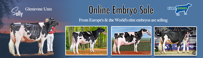 8. Dezember 2025 A brand new edition of the Eurogenes Online Embryo Sale just started. With for sure the best offers from the greatest cow families around. With for example: Aurora HOWLAND P (+3348 GTPI / +1.56 PTAT) embryos from Broeklander HiPo H Liza (+3143 GTPI / +1.11 PTAT), Brown Heaven R Famous (4x Premier Sire Heifer Show WDE) x Kedar Blooming Snickers EX-90-DE, the great-granddaughter to the 6x Grand Champion World Dairy Expo, Female Delta-Lambda embryos from Ms Milksource Signature, the Tatoo daughter from Glenirvine Unix Sally EX-96-USA, Female Hinge embryos from Butlerview Bru Glorios, the Bruins daughter from the potential EX-95 Unix daughter Rosemary Unix Goldie EX-94-USA 5yr. and more herdbuilding packages. Continue reading.. Mehr lesen