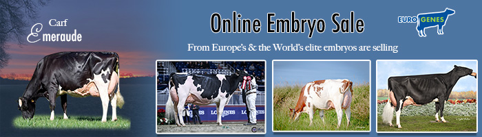 October 31, 2025 A new edition of the Eurogenes Online Embryo Sale is OPEN for BIDDING. Log-in and take a view in the exciting offering with embryos from the hottest sires and greatest families right now! Selling are: Female Hinge (+3237 GTPI / +2.73 PTAT) embryos from Ms Milksource Signature, the Tatoo daughter from Glenirivine Unix Sally EX-96-USA, Female Image embryos from Miss Lambda Footloose VG-87-USA 2yr., Female Dropbox embryos from RH Lambda Barbara, the granddaughter to the Grand Champion World Dairy Expo 2019, Aurora Lyrics (+3411 GTPI) embryos from the Rainyridge Tony Beauty EX-CAN family and many more! Click further for the complete offering. Read More