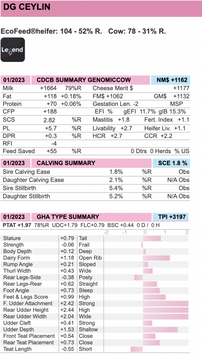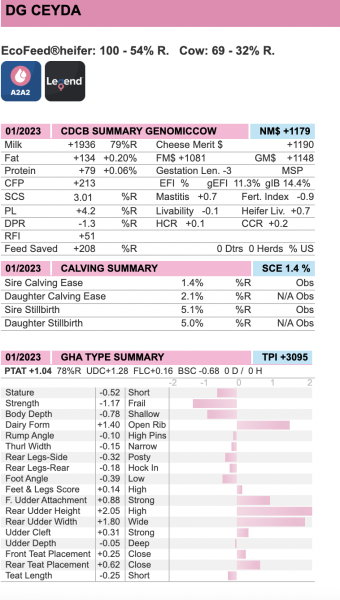 #1 GTPI heifer in Europe at +3197 GTPI from DG breeding program!