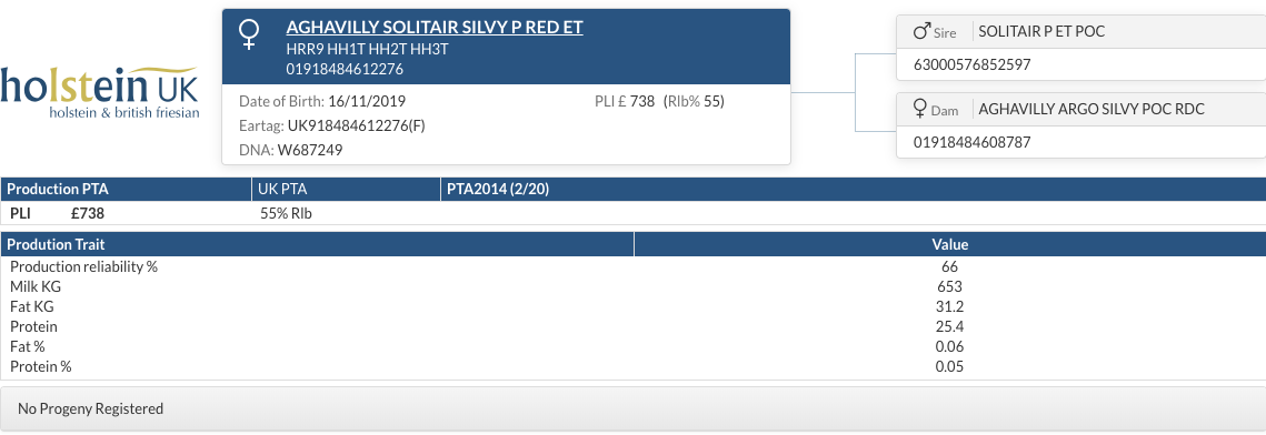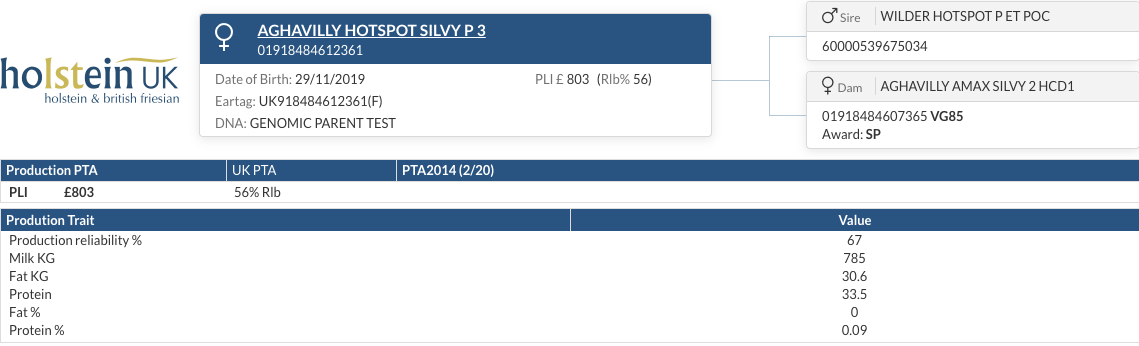 A unique performance in it's own way!! Aghavilly Holsteins in the United Kingdom has bred the #1 POLLED & #1 Red & White heifers in the British PLI system. Aghavilly Solitair Silvy P Red is the #1 Red & White PLI heifer in the UK at +738 PLI £. She combines this great index with +653 Milk and +0.06% Fat & +0.05% Protein. Second is Aghavilly Hotspot Silvy P 3 at +803 PLI £ in combination with +785 Milk and +0.09% Protein. This Wilder Hotspot P heifer came out as the #1 POLLED PLI heifer in the United Kingdom. Both incredible heifers are tracing back to Bookem daughter JK Eder Silvy EX-92-UK, daughter of the former #1 GTPI cow in Europe: All.Nure Baxter Silvy EX-90-NL EX-MS 5yr. This family produced the bulls Ashlar @ Semex, Dertour @ RUW & many more.
