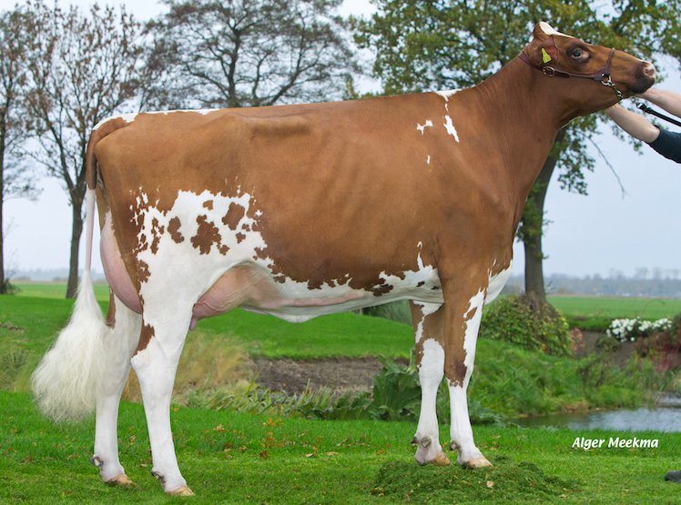 Last index run was a great succes for Beeze Holsteins. Several calves came back with high indexes for NVI and RZG. One of the highest gNVI heifers in the breed for RED & POLLED came back through Beeze Oldleus Gwenna P Red, she is+360 gNVI and +161 RZG, sired by Mr. Salvatore *RC out of the Molenkamp Grietje cow family!