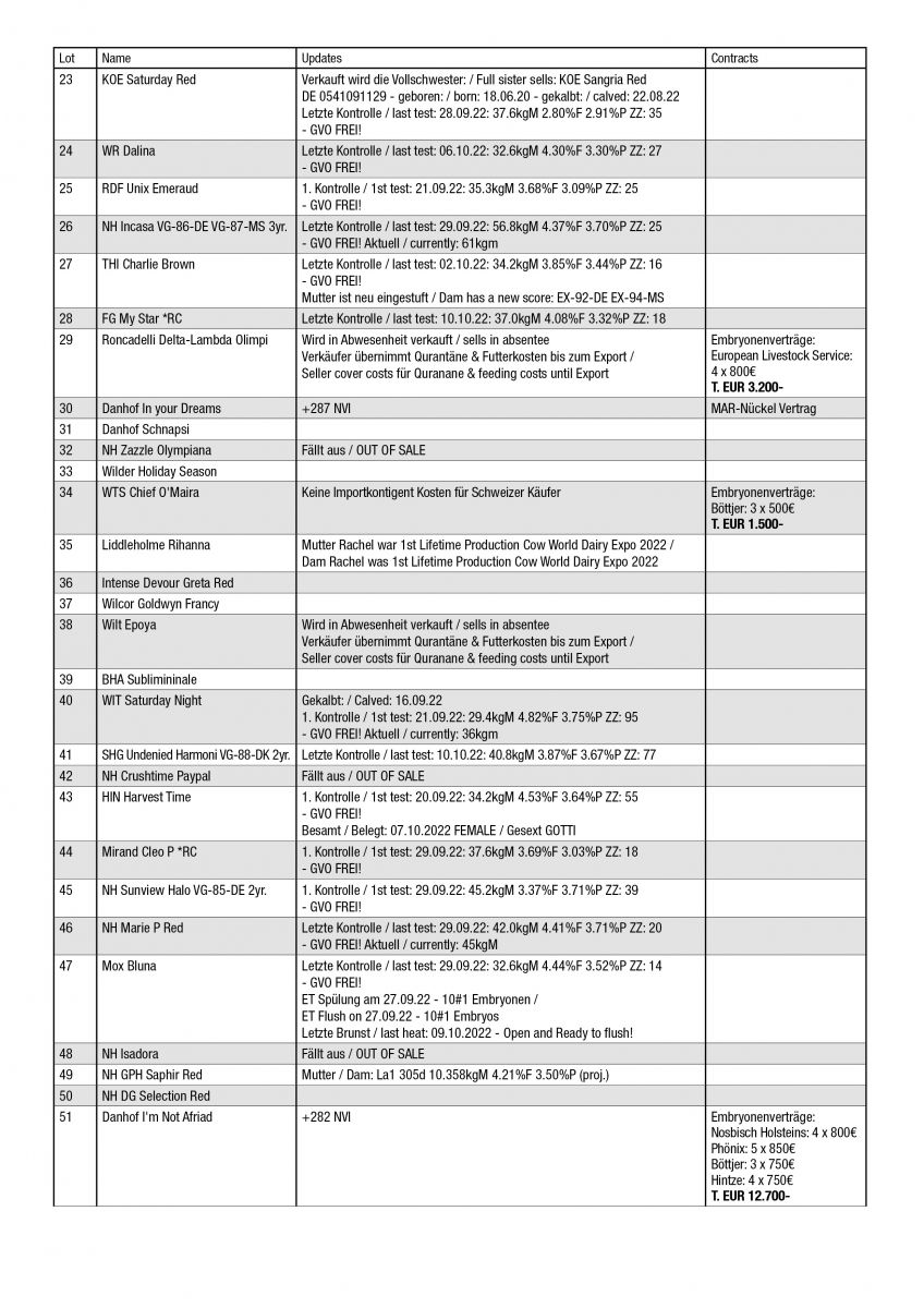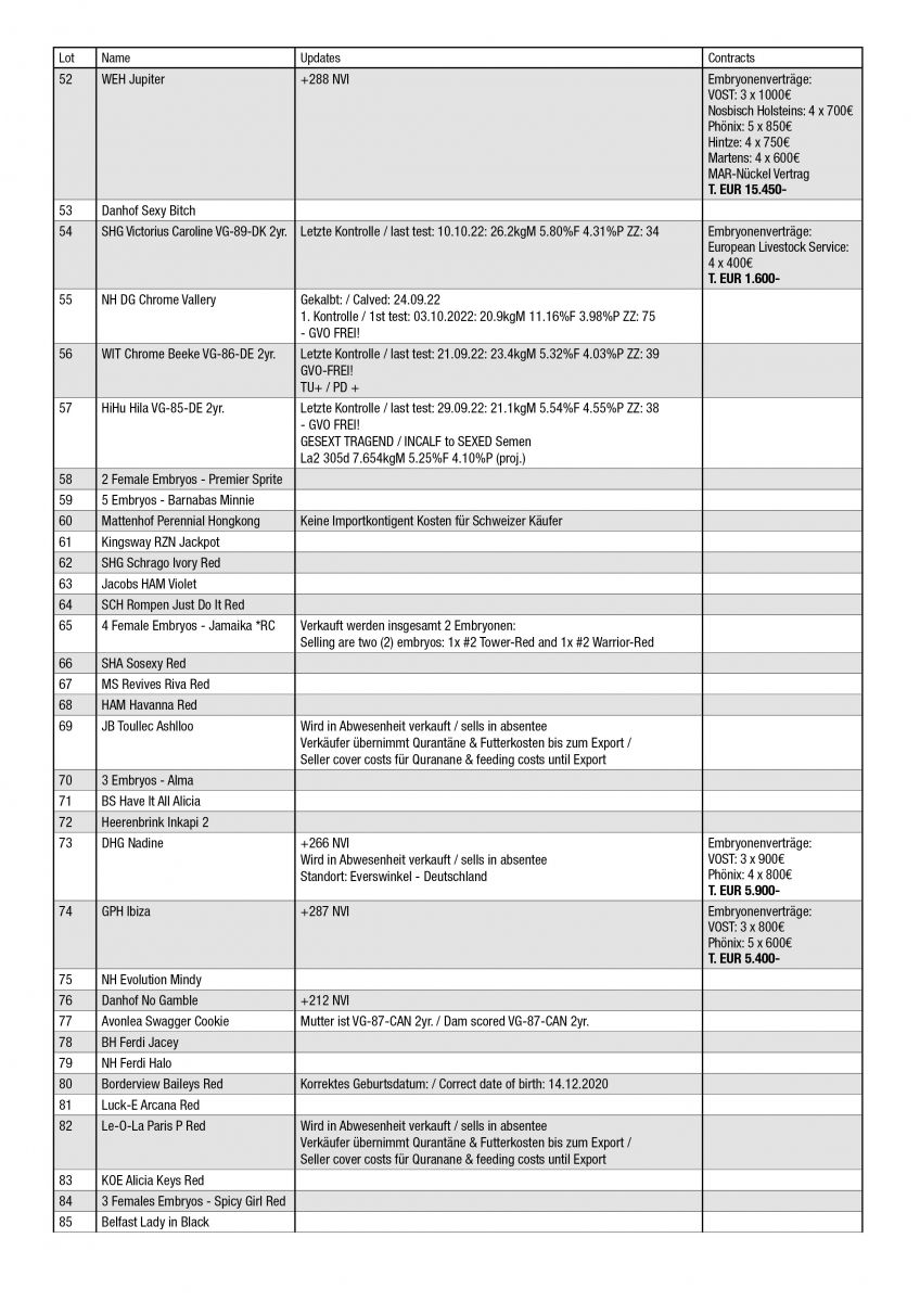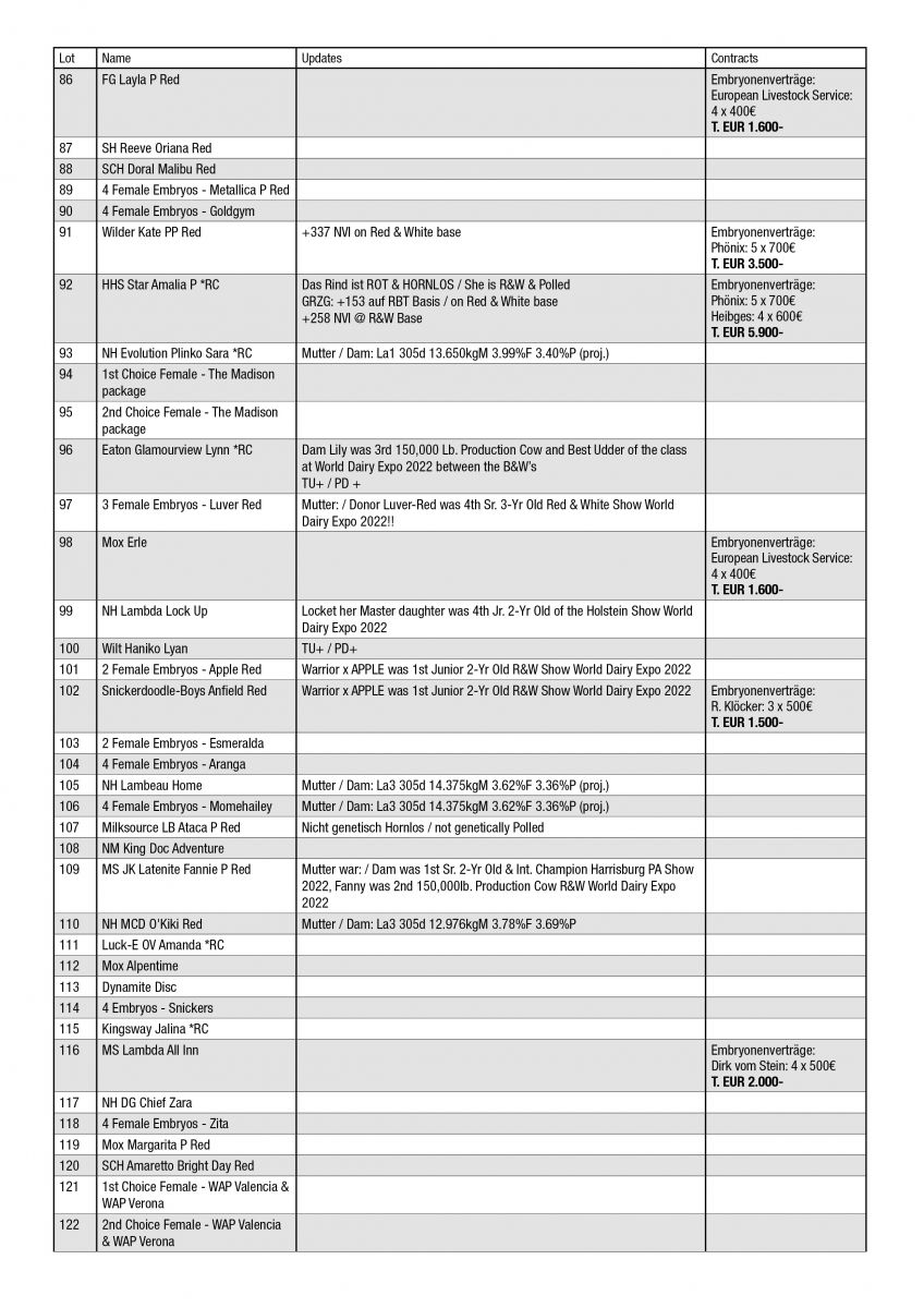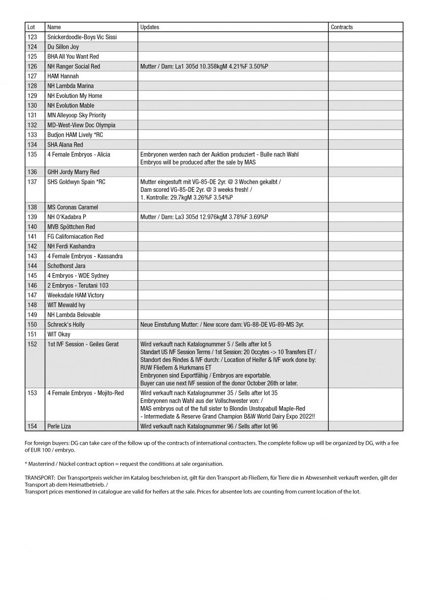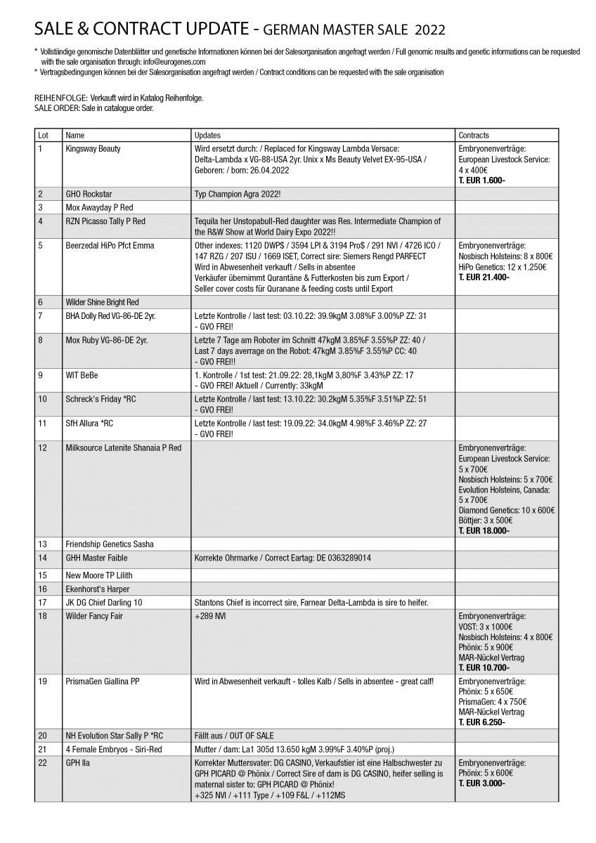 The first SALE UPDATE of the German Masters Sale is now ONLINE available!! This SALE UPDATE also includes the embryo contracts of the great lots selling in the German Masters Sale 'LIVE SALE'. More info or new contracts will be added later.