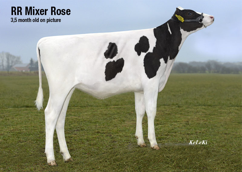 RR Mixer Rose is the #2 GLPI Mixer daughter World Wide with DGV LPI +3355 / Conf. +16! This topper in the herd of JK Eder Holsteins stems from the famous German R Cow family of Zuchtbetrieb Reinermann. This family is well known for their super performances in different herds, high protein and is the family behind the proven bull Riverland.