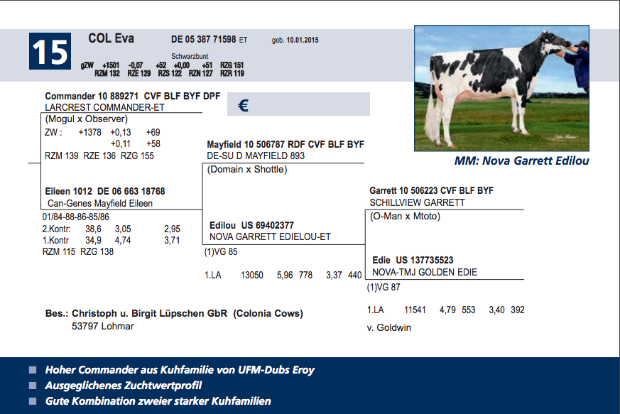 Friday, January the 8th 2016 is the 25th Highlight Sale in Hamm, organized by the German AI RUW. 27 lots are selling including a few heifers selling by the Eurogenes members Colonia Cows and CNN Holsteins. Click further for more info.