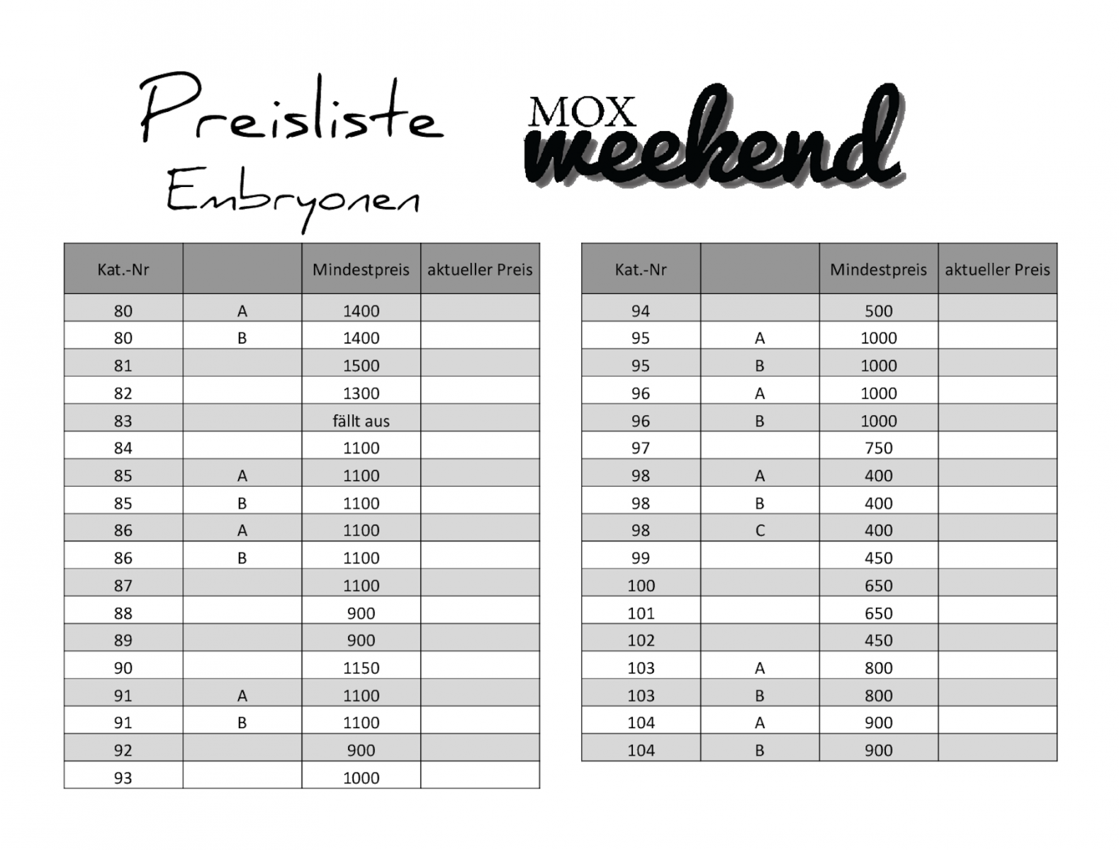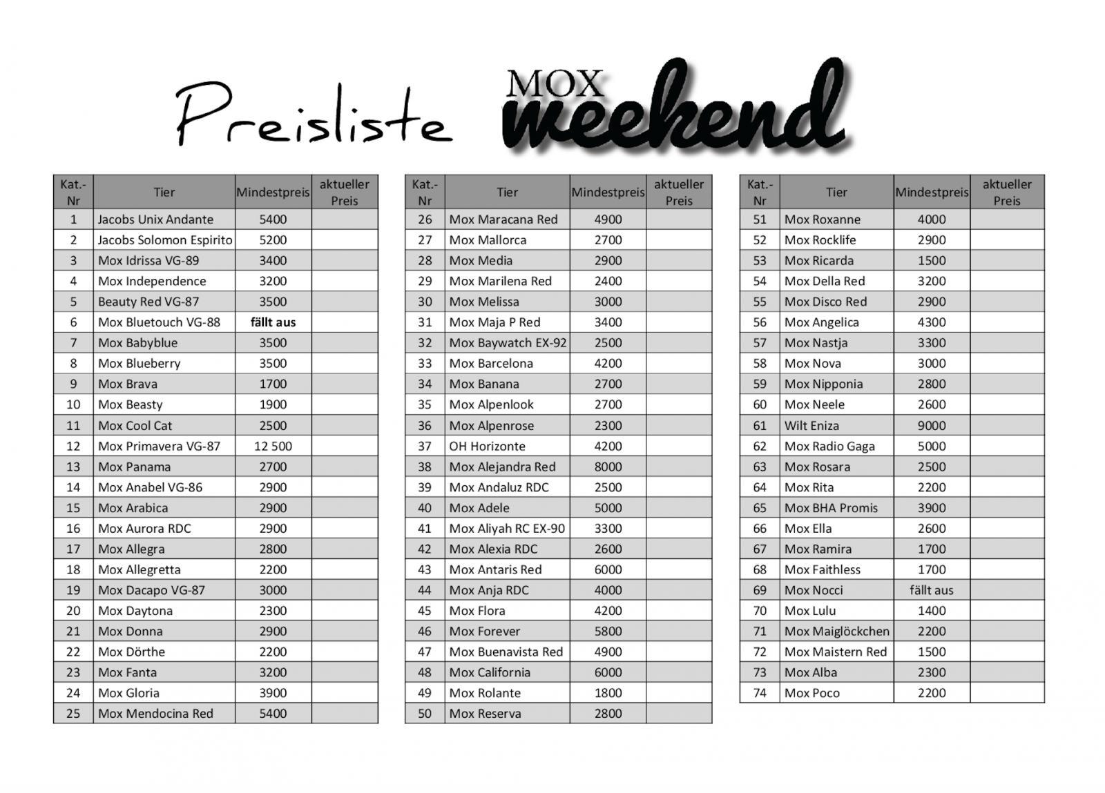 3. MOX WEEKEND - pricelist lots available!