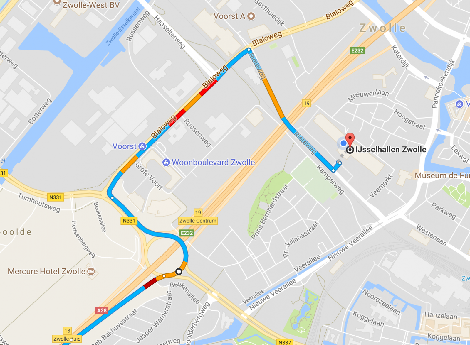 Adviesroute naar NRM (IJsselhallen) i.v.m. wegwerkzaamheden