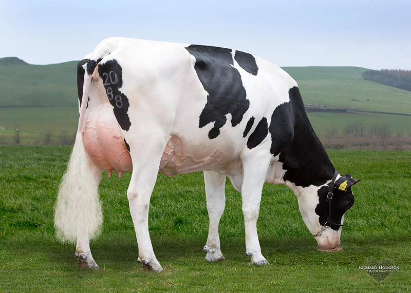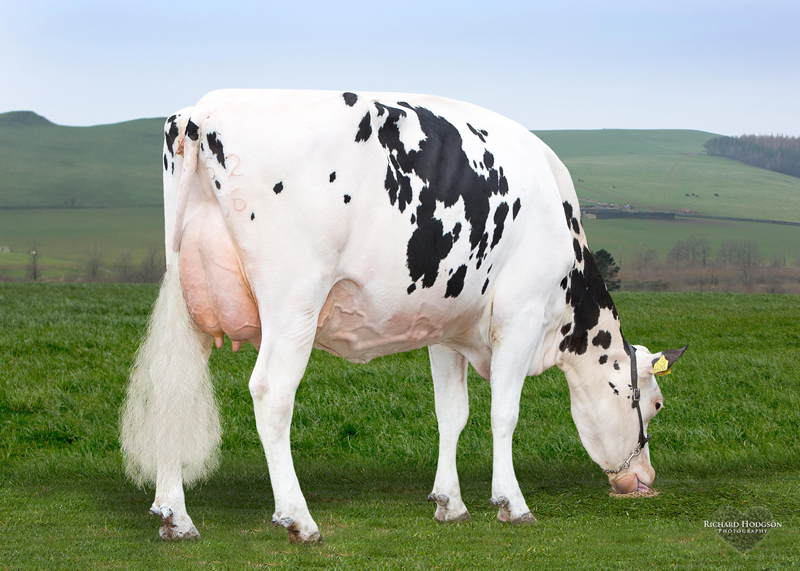 Bouw Snowman Carry VG-85-UK 2yr. carries a beautiful sire stack. She is sired by Snowman x Pronto (not available in Europe) and goes back on the successful cow family of Ralma Juror Faith. Carry already produced over 13.000kg Milk in 305 days with 5.5% fat and 3.1% protein. Her dam is one of the most popular Pronto daughters in Europe whose embryos have been exported all around the World.