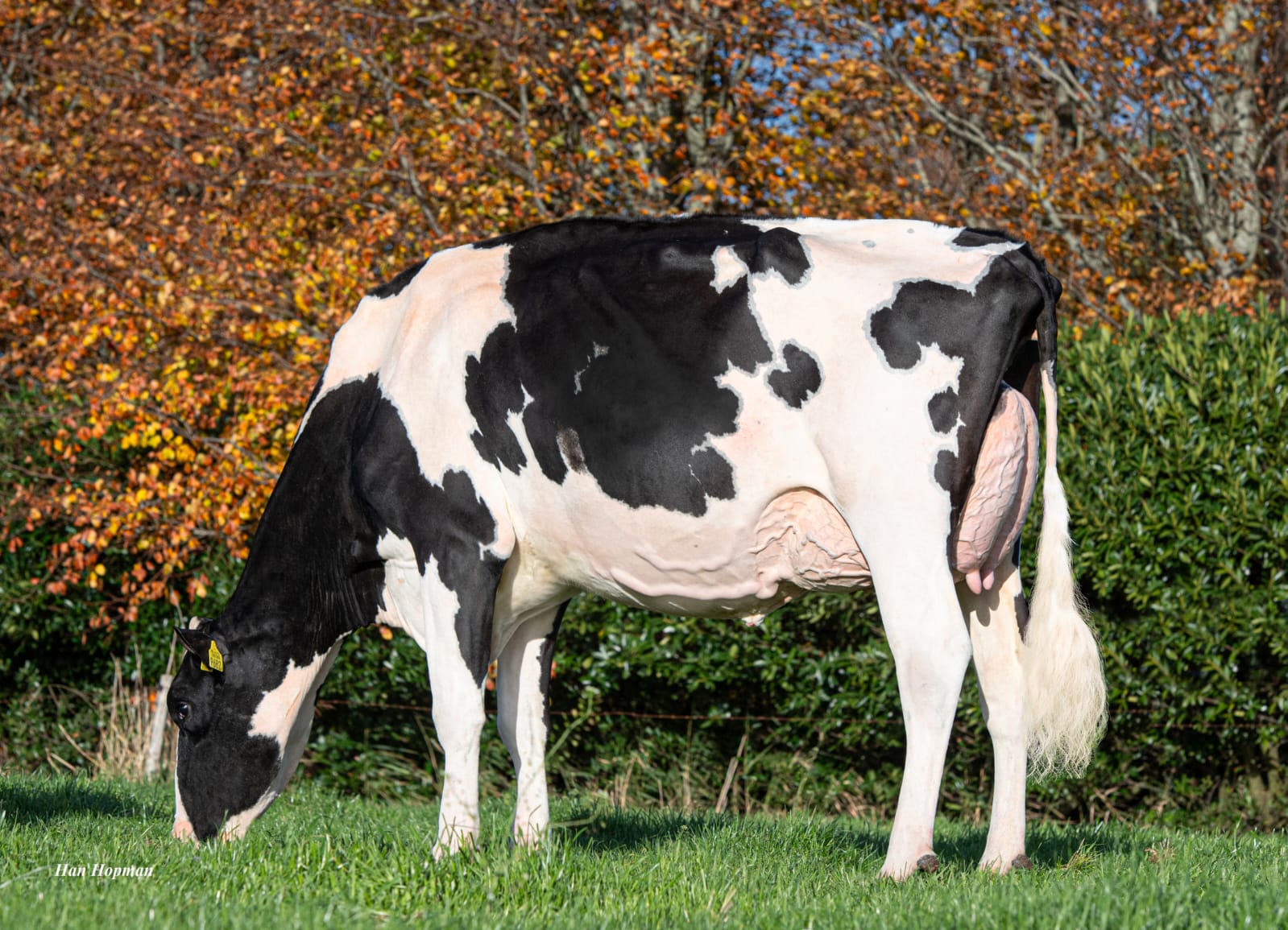 She belongs to one of the greatest fresh Mirand PP *RC 2yr. olds in Europe: Evolution Graziana P *RC! This tremendous 2yr. old is last week classified with VG-87-NL and VG-89 for her tremendous Mammary System! Her dam is the stunning Mattenhof High Octane Graziana VG-87-DE 2yr. out of the Grand Champion European Show Colmar '16, Grand Champion Swiss Expo '16, Grand Champion Expo Bulle '15 & '16, Reserve Grand Champion Swiss Expo '15 and more: Galys-Vray EX-94-CH! This silky black Atwood daughter is the full sister to Grand Champion Expo Bulle '22 & Reserve Udder Champion Expo Bulle '22: Hanna-Vray EX-96-CH EX-98-MS. Another great highlight during this classification round at JK Eder was for JK DG Esmee. She is fresh in her 2nd lactation and classified with VG-88-NL with VG-89 for her Mammary System! She is a Crushtime daughter out of JK DG Esmeralda EX-92-NL EX-94-MS out of the 'Dutch cow of the Year 2022: Carf Emeraude EX-91-NL! Out of her are selling this week Female Siemers Rengd Parfect embryos in the Eurogenes Online Embryo Sale.