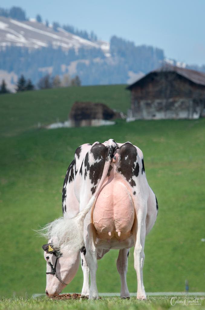 She is one of Doorman's best daughters and a truly DIAMOND: Au Parchy Doorman Jolie, the Senior & Grand Champion Expo Bulle 2019 has recently been pictured again by Celine Oswald in her 5th lactation!! She is one of the most popular show cows in Europe with also winning: H.M. Grand Champion Swiss Expo 2018, Res. Intermediate Champion Swiss Expo 2017, Classwinner Expo Bulle 2018 and 4th at the European Show Libramont 2019. Congrats to Hullcrest Holsteins, Gobeli Holstein, R. Gasser and H. Räz!