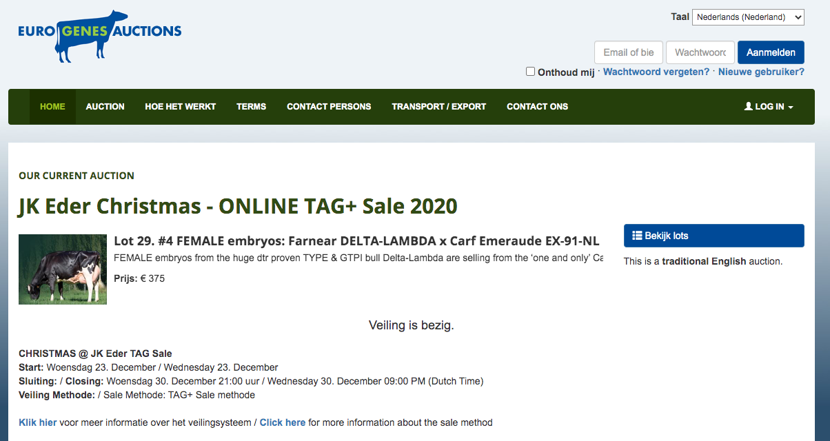 The auction site of the CHRISTMAS & JK Eder Online TAG+ Sale is NOW ONLINE available at WWW.SALE.EUROGENES.COM. The site is filled with the start prices, buy now prices, pictures and complete info of the lots selling. Don't miss out this special occasion starting Wednesday December the 23th till Wednesday December the 30rd through Eurogenes. Take a look at the excinting offering now!