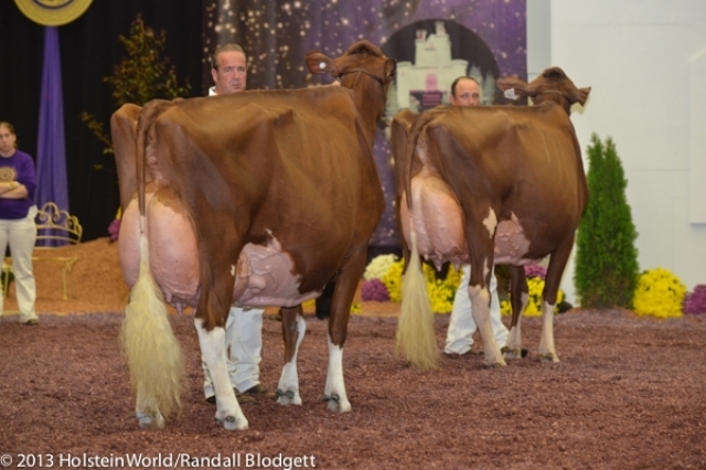 APPLE and her clone, winning Grand & Res. Grand R&W at the World Dairy Expo 2013