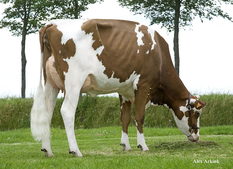 BTS Avea-Red is fresh and in top shape in de Rijnhof Holsteins herd (She is in combined ownership with Diamond Genetics) She combines the high index (#1 GTPI Detox World Wide & #3 GTPI R&W cow in the World) with great type (1st Jr. Heifer Summershow Beilen 2013, competed with the B&W's) and tremendous cow family (the Aiko / Apple cow family). One of the best things: SHE TRANSMITS!!! Her beautiful RC dtr with over 2200 GTPI sells in the Holland Masters Sale and her R&W Aikman son with RZG 156 sells in the Online Elite Bull Sale this week!