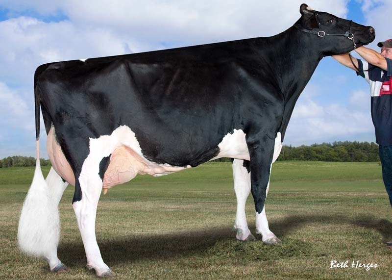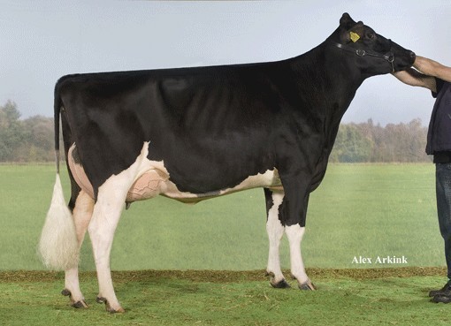 Socrates dtr Texel-Beauty Barbwire of Schep Holsteins is the newest 7th generation EXCELLENT from the Barbie cow family! Barbwire has a great carreer so far, she sold as a calf in the Holland Masters Sale and scored the maximum VG-89 2yr. in the Schep Holsteins herd, she was 1st in her class at the National Show and has a VG-88 2yr. Old dtr already! Her dam, Regancrest G Bedazzle EX-91-USA is a Goldwyn dtr out of Regancrest-PR Barbie EX-92-USA!