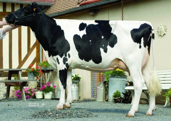 Baviere, the former #1 GTPI cow World Wide and still the current #1 Shottle dtr in Europe increased her score up to VG-87-FR in her 2nd lactation with an Excellent Mammary System! Baviere already proven herself to be a great brood cow as her Superstition son at Semex, DKR Jakarta is one of the highest Super sons World Wide (GTPI +2287) and her Bronco son @ Masterrind is the #1 Bronco son in Germany with +150 RZG! Baviere her daughters also belongs to the top of the World Wide genomic ranks. DKR Bayla GP-NL VG-86-MS 2yr. is the #1 RZG cow World Wide (+153) while her Palermo dtrs are with +188 ISU & +185 ISU the #1 & #2 Palermo dtrs in France! This beautiful cow family goes back on the Canadian Cow of the Year and mother to Linjet, Sunnylodge Prelude Spottie VG-87-CAN 18*