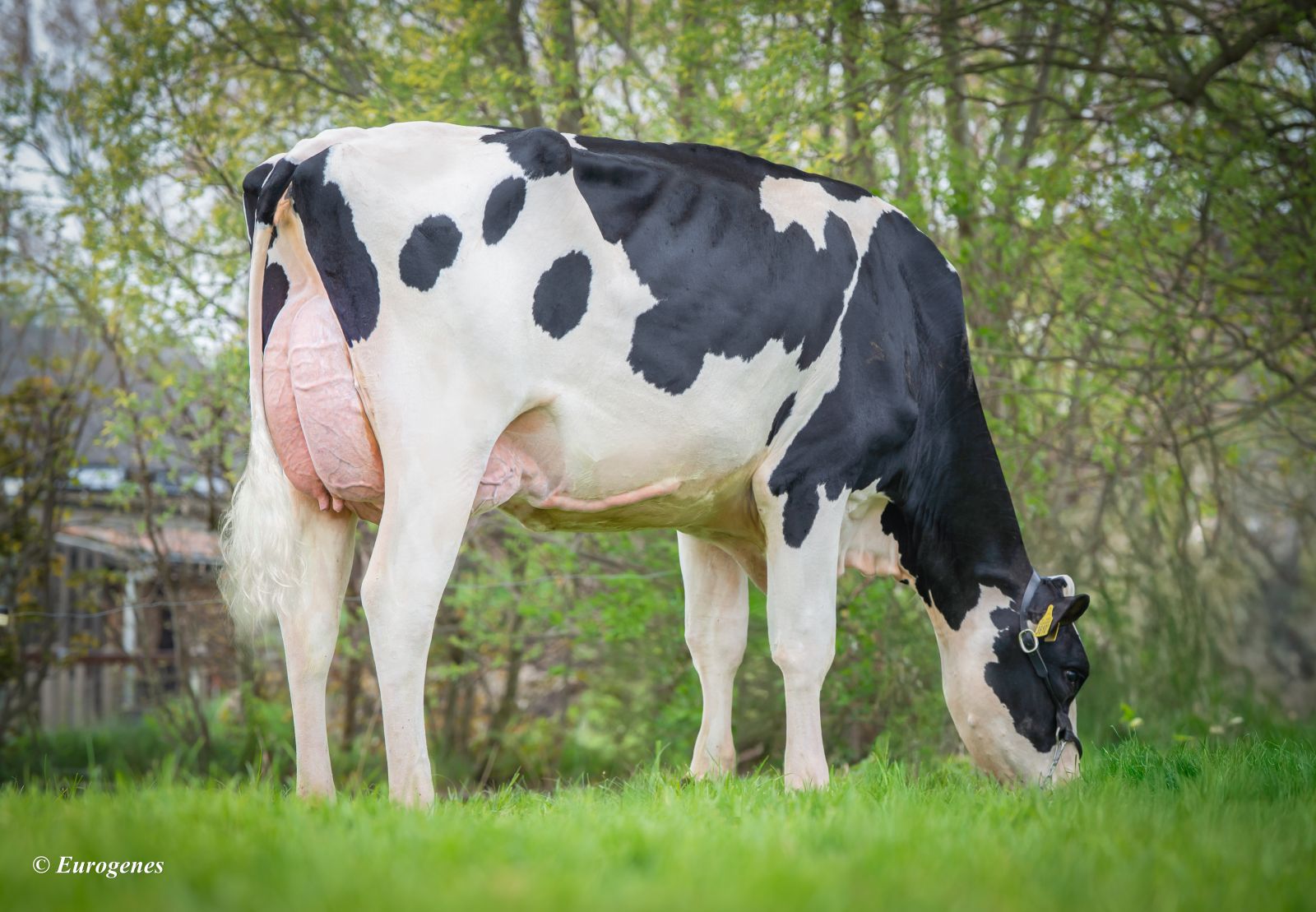 A beautiful 2yr. old sired by Aot Hullabaloo is making furore in the Netherlands. DGF Fairy VG-87-NL VG-88-MS 2yr. is bred by Diamond Genetics and is doing a great job! This outstanding 2yr. old traces back to a Mirand PP *RC daughter to NH Doc Fun VG-85-FR 2yr. - the former top PTAT cow (>2 Years) in Europe & dam to PTAT sire: DGF Dani P @ Ascol at +2.61 PTAT - x VG-86 2yr. Monterey x VG-87 2yr. AltaOak to Ralma Juror Faith EX-91-USA GMD DOM. DGF Fairy VG-87-NL VG-88-MS 2yr. is maternal sister to DG Flintcombe PP Red @ Inseme.