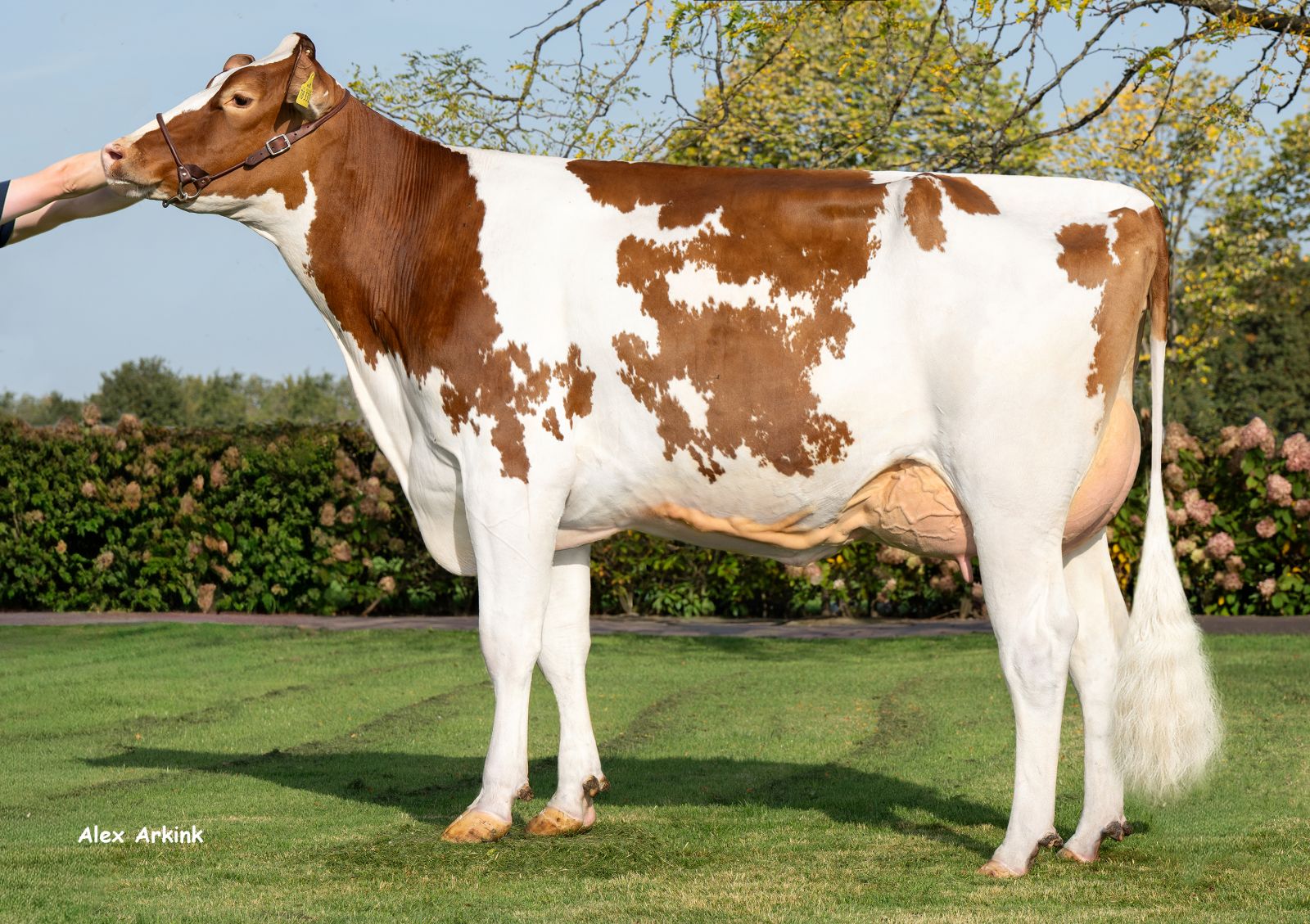 Friday november the 28th, 2025 is the VOST Select Sale taking place in Germany! Eurogenes member Beerzedal Holsteins (NL) sells the Nr. 1 gRZ€ Red&White Sweet *RC daughter with +192kg F+P! She sells as Lot 66. Beerzedal HiPo S Brenda Red at +157 RZG with +2333kgM, +0.13%F, +0.01%P, +119 RZE (Type) and +3048 gRZ€. In her Dutch index she notes +437gNVI with 686 INET, +3073kgM and 952 PL! Her dam is an early, fresh and promising Mask-Red daughter and produces 53kgM / day. Brenda Red is from the same family as the daughterproven sires Topmodel @ Synetics, K&L OH Bellwether @ ABS and goes back to the Pen-Col B cow family!