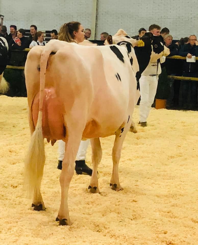 The FDV Wintershow was held in Pesse, Drenthe last weekend. The new Grand Champion of the show is Shottle daughter, Grand Champion National NRM '14 & Res. Senior Champion NRM '17: Jimm. Holstein Hellen 589 EX-94-NL exhibited by John de Vries. The Reserve Senior title went to Antares daughter: Anta from Veenhuizer Holsteins. Her herdmate Veenhuizer KG Nela (s. Kerrigan) was Udder Champion & Reserve 2-Yr Old Champion in Pesse. Heerenbrink Butterfly (s. Atwood) tapped out as the 2-Yr Old Champion, her dam is the European show cow & Reserve Senior Champion NRM '19: Drakkar Bulona EX-92-NL EX-93-MS. Intermediate Champion was Giessen Cinderella 159 (s. Mr Mogul Denver) bred by Giessen Holsteins and exhibited by Kuiper-Uilenreef. The big title of the Junior Show went to the 2nd placed heifer @ Swiss Expo '20: Bel Crushtime Deejay of Hullcrest Holsteins who also won the Calves Show. In Reserve followed Diamondback offspring Twente Dairies Melanie of Bosma Holsteins.