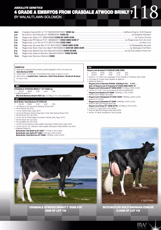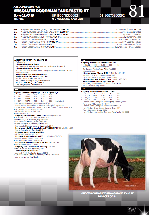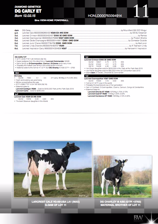 The annual Borderway Black & White Sale will be held this Saturday, the 3rd of December at Borderway Mart in Carlisle, England. Several Eurogenes members selling some great type heifers, fresh cows, the best from the Jersey & Brown Swiss breed, embryos packages and more. Click further for the catalogue.