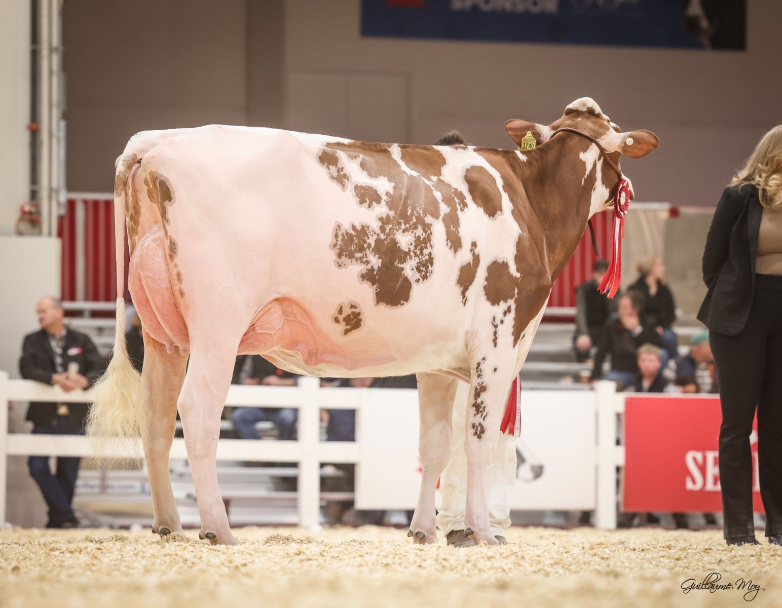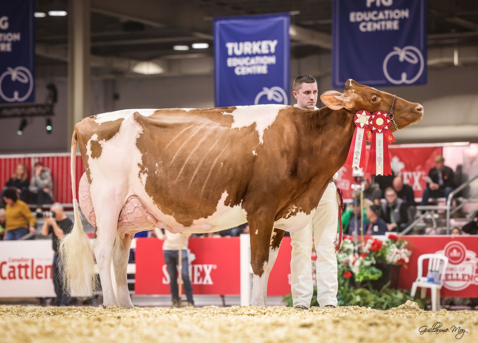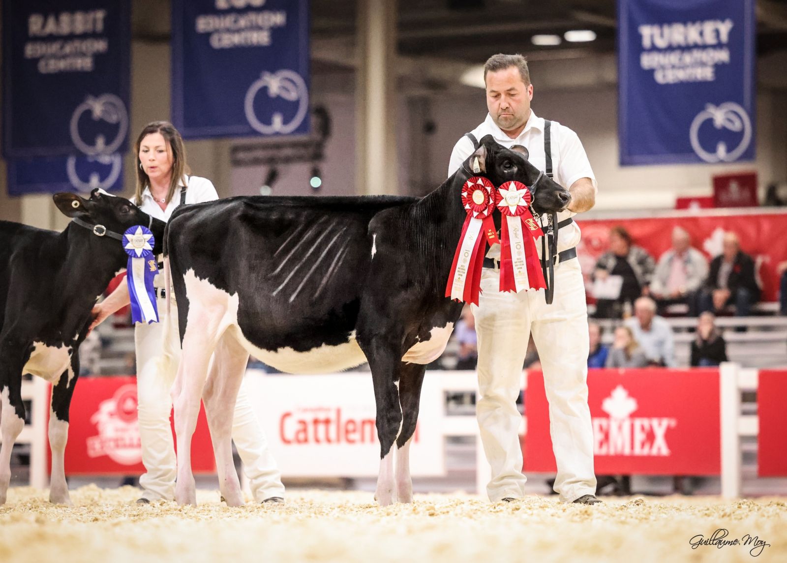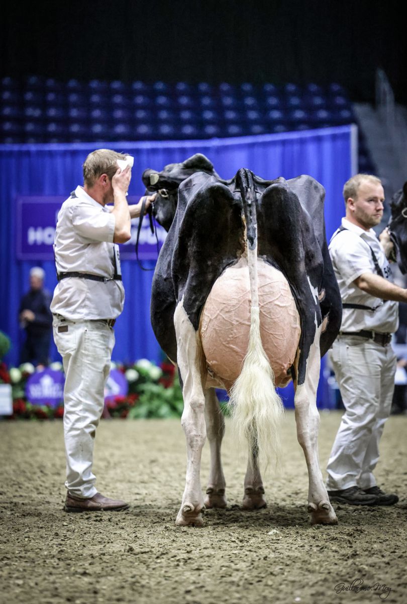 A phenomenal achievement for Blondin Rd Unstopabull Maple-Red VG-88-CAN 2yr. last weekend at the Royal Winter Fair '22 in Toronto, Canada. At thurday, she became first in her class with Senior 3yr. olds and became later that day Grand Champion Red&White. On Friday she entered the ring again, but this time between the Black&Whites. She was in topshape and won her class. She had also Best Udder in her class and became again Grand Champion Black&White. She is a gorgeous Unstopabull-Red daughter out of Kawartha Armani Memory-Red EX-92-CAN EX-94-MS from Lochdale Shaquille Missy-Red EX-93-USA 2E. Maple-Red VG-88 her full sister is owned by Hullcrest Holsteins and became 2 weeks ago first in her class at the National HHH-Show '22. At thursday in the Summer Calf class became Blondin Legend Linda first in her class, she is a Blondin Legend daughter out of Blondin Avalanche Lynley VG-85-CAN 2yr. She is co-owned by Hullcrest Holsteins, Netherlands.