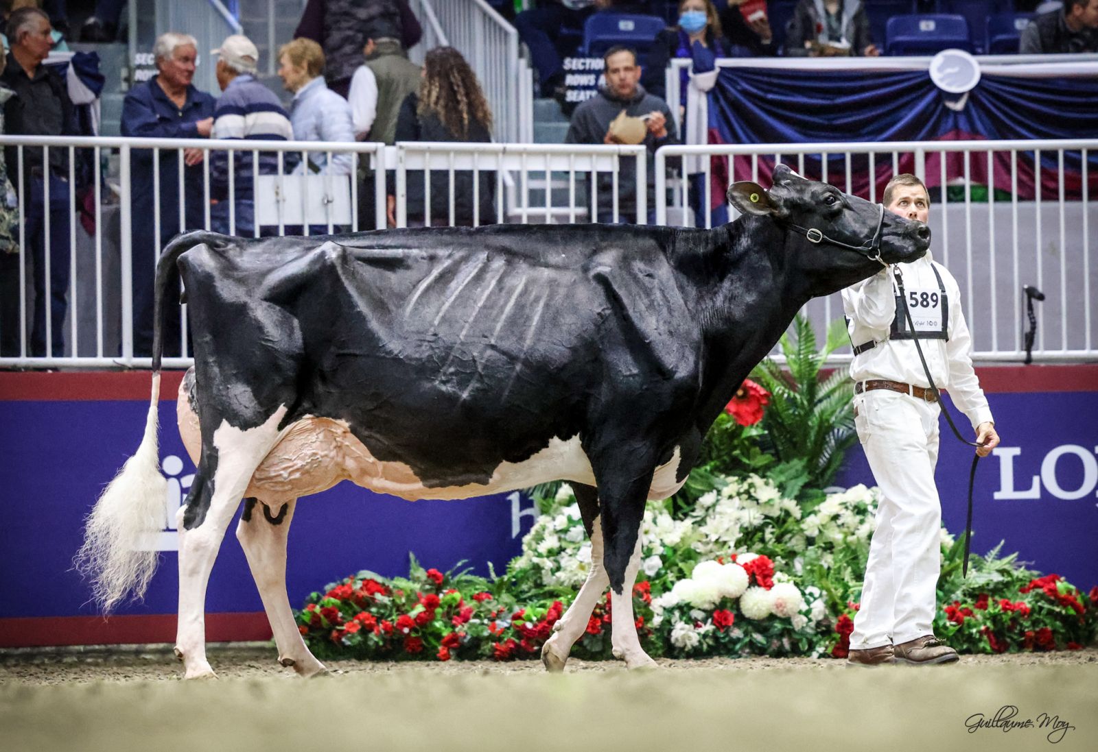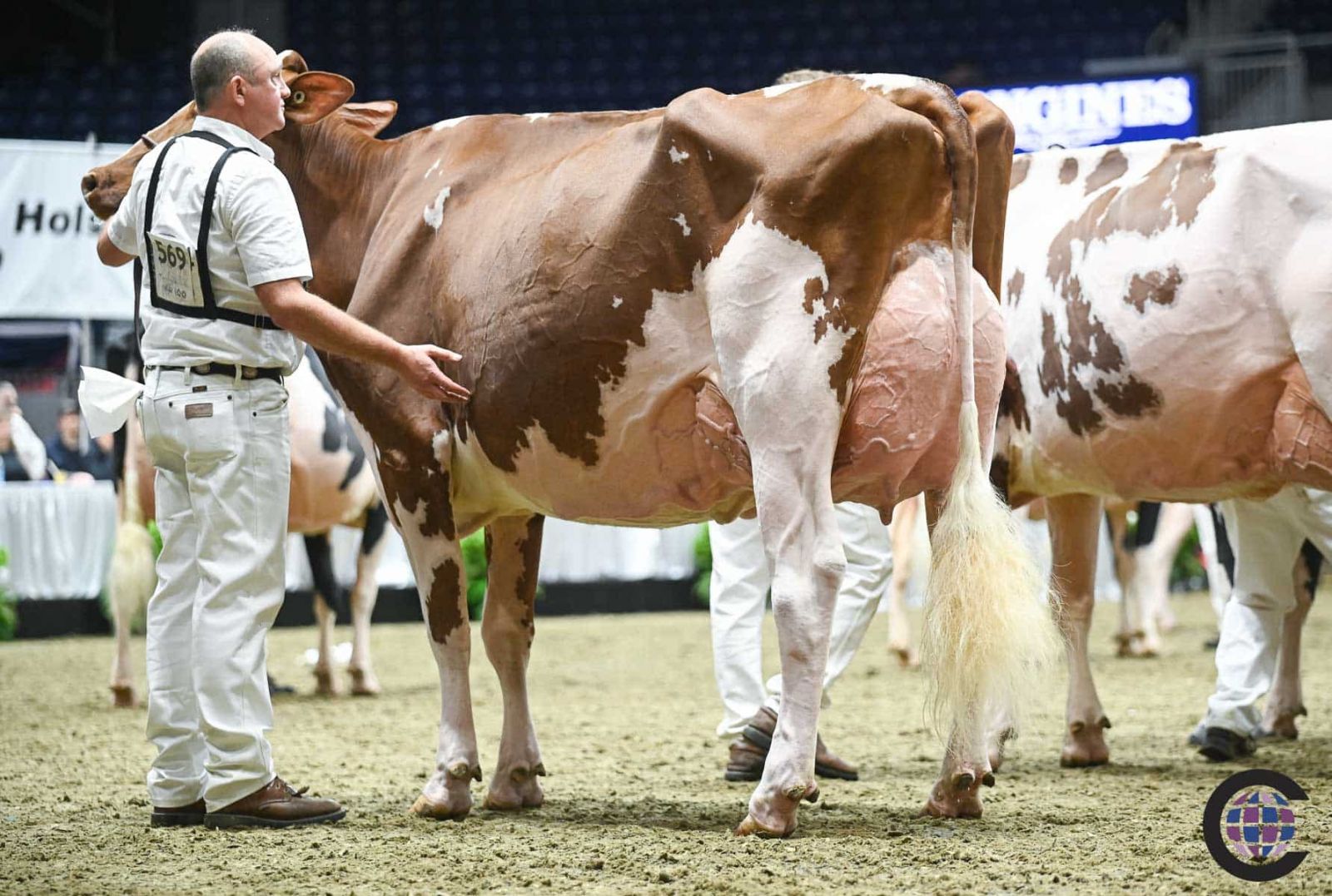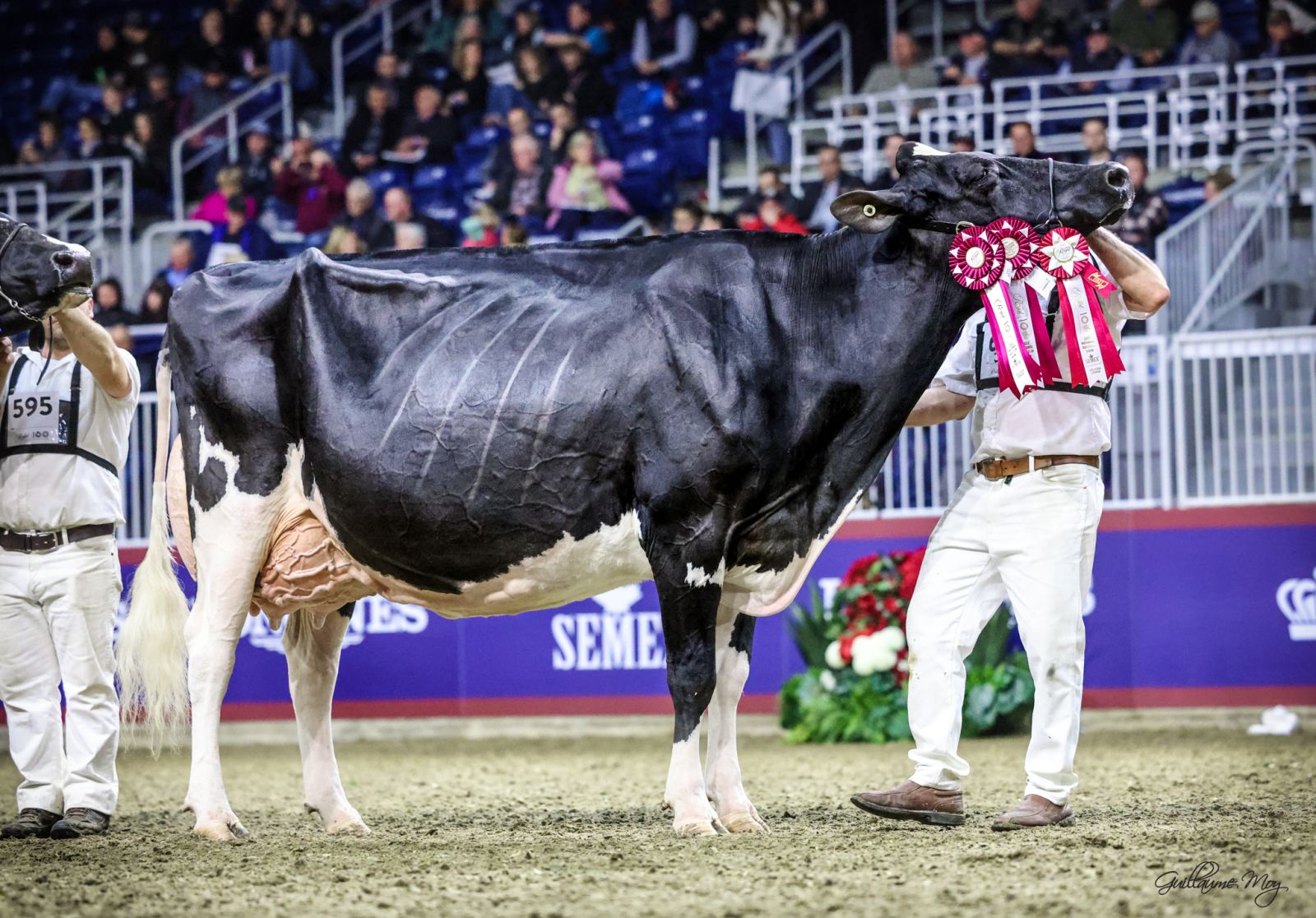 A phenomenal achievement for Blondin Rd Unstopabull Maple-Red VG-88-CAN 2yr. last weekend at the Royal Winter Fair '22 in Toronto, Canada. At thurday, she became first in her class with Senior 3yr. olds and became later that day Grand Champion Red&White. On Friday she entered the ring again, but this time between the Black&Whites. She was in topshape and won her class. She had also Best Udder in her class and became again Grand Champion Black&White. She is a gorgeous Unstopabull-Red daughter out of Kawartha Armani Memory-Red EX-92-CAN EX-94-MS from Lochdale Shaquille Missy-Red EX-93-USA 2E. Maple-Red VG-88 her full sister is owned by Hullcrest Holsteins and became 2 weeks ago first in her class at the National HHH-Show '22. At thursday in the Summer Calf class became Blondin Legend Linda first in her class, she is a Blondin Legend daughter out of Blondin Avalanche Lynley VG-85-CAN 2yr. She is co-owned by Hullcrest Holsteins, Netherlands.