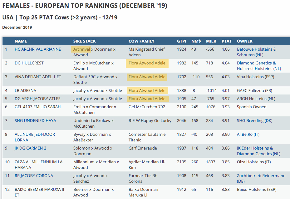 Bolleholster Genetics dominating in the top 25 PTAT cows: CLICK HERE for the full ranking