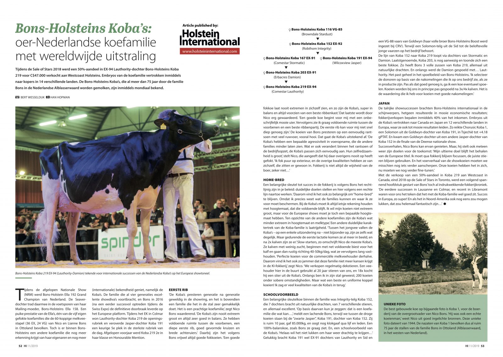 Bons Holsteins has been chosen by the voters of Holstein International as one of the most influential breeders of the last 25 years. The made it to the 17th spot in the top 50 most influential breeders around the world. One of the greatest families in the European show ring at Bons Holsteins are the Koba's. Last year at the European Show Bons-Holsteins Koba 219 EX-94-NL EX-95-MS made furore with a second place and at final four for Senior Champion. Furthermore she was crowned as the Grand Champion National HHH-Show 2017 & 2018!