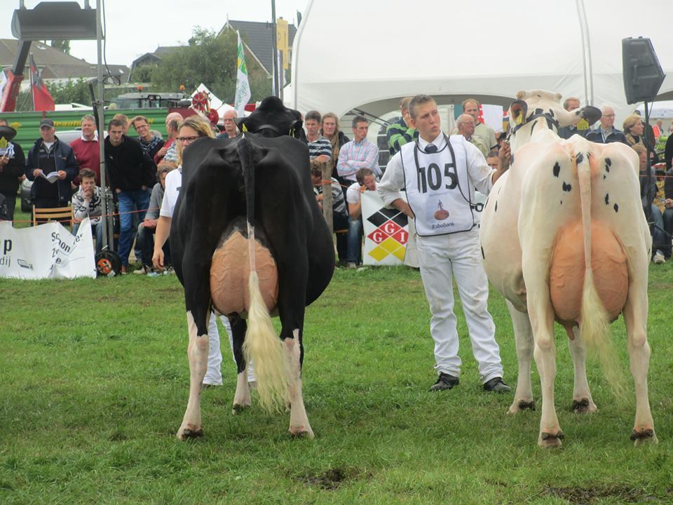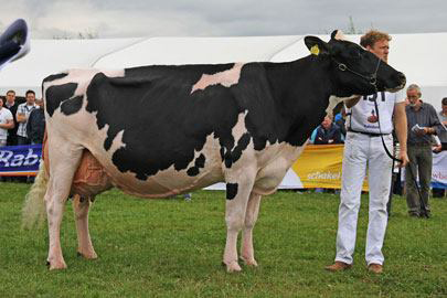 Bons Holsteins have had again an amazing county show in Hoornaar! Last year they already took the Grand Championship home with Bons-Holsteins Ella 139 EX-92-NL while this year their CB Allen-daughter Bons-Holsteins Ella 153 EX-91-NL named Senior and Grand Champion! Earlier on the day Bons-Holsteins Ella 186 VG-88-NL 2yr. captured the Jr. 2-Yr. Old title at the Black & White's. In the Intermediate class was a great battle between the full sisters Bons-Holsteins Koba 191 EX-91-NL and Bons-Holsteins Koba 195 VG-88-NL 2yr. who named Intermediate and Res. Int. Champion! The successes did not stop when Bons-Holsteins Aaltje 93 EX-90-NL was crowned with the Red & White Champion title!