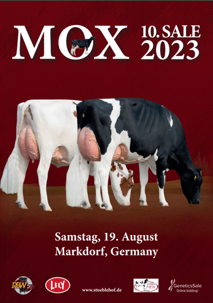 One of the most exciting sales will be held Saturday 19. August @ Mox Holsteins: the 10. MOX SALE. This sale offers a terrific line up with >70 lots from the best pedigrees around the globe. Selling are a VG-88 Unix daughter from the same family as Ashlyn-Vray, a Huge daughter straight out of the Grand Champion RBW-Schau 2016: Jalau Alpengirl EX-90-DE, a Peak Jagger grand daughter from Blondin Goldwyn Subliminal EX-97-USA and multiple more interesting lots.