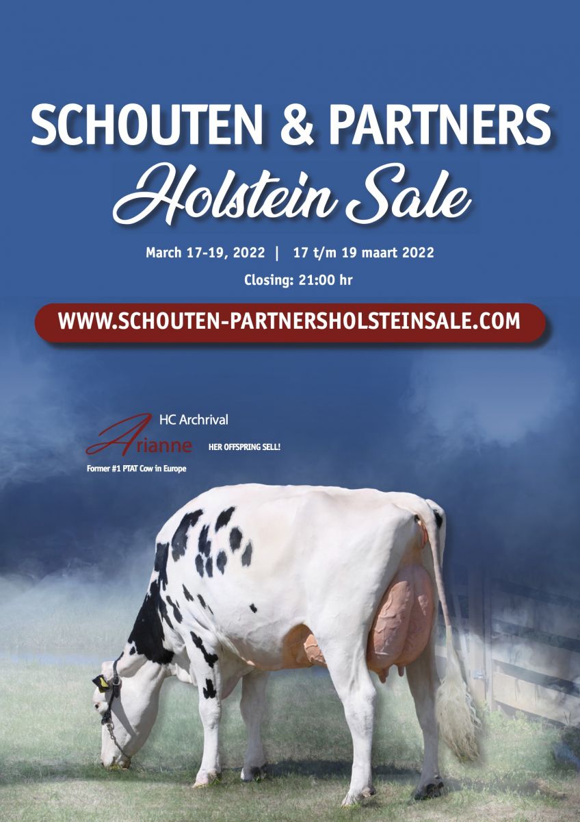 The catalog of the Schouten&Partners Holstein Sale is ONLINE now! This sale offers the very best heifers, fresh cows and embryos from amazing families like HC Archrival Arianne, Bons-Holsteins Aaltje 149, Lylehaven Lila Z, Blondin Goldwyn Subliminal, Jacobs Gold Liann, Rainyridge Tony Beauty, FG Destry Madame, KHW Regiment Apple-Red and many more! Don't miss this sale taking place on March 17-19, 2022! Stay tuned at schouten-partnersholsteinsale.com for more info about this super sale coming up!!
