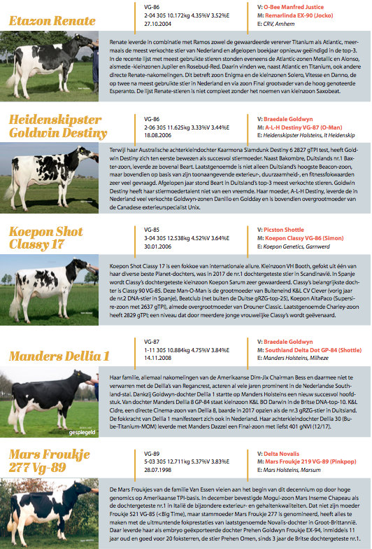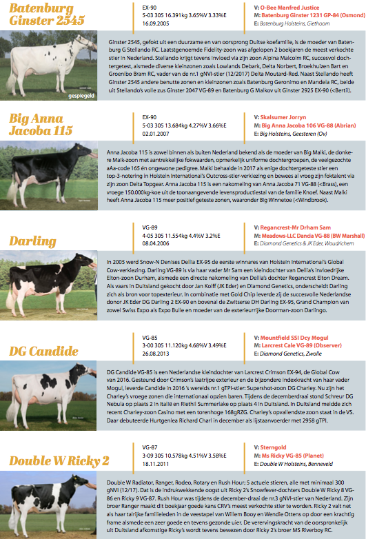 There is a ‘Dutch cow of the year’ election for the first time in the history of the HI+. An impressive list of 15 influential Dutch brood cows has been selected. Including som very famous names and cows of Eurogenes-members. Including the dam of the Swiss Expo Champion DH Gold Chip Darling, DG Candide (dam of the influential bull DG Charley @ ABS), Mars Froukje 277, Heidenskipster Goldwin Destiny and many more. Look further for all the nominated cows and information!