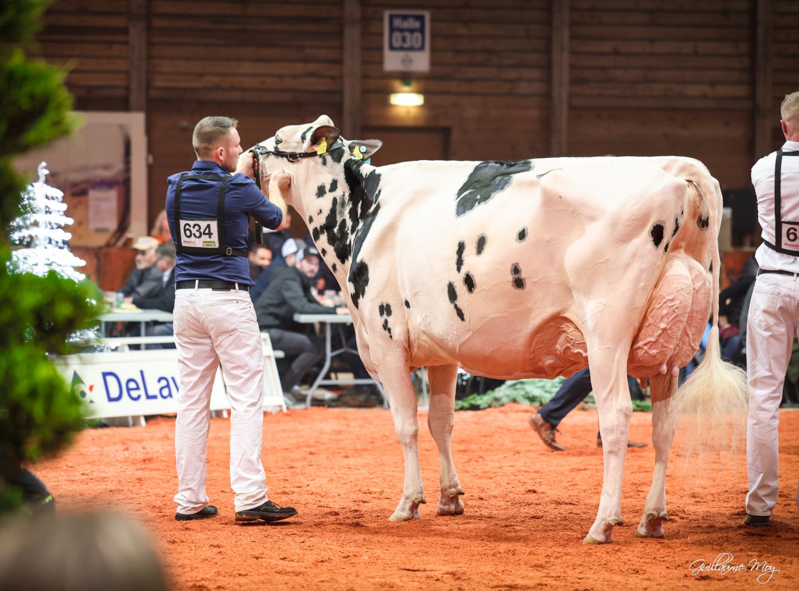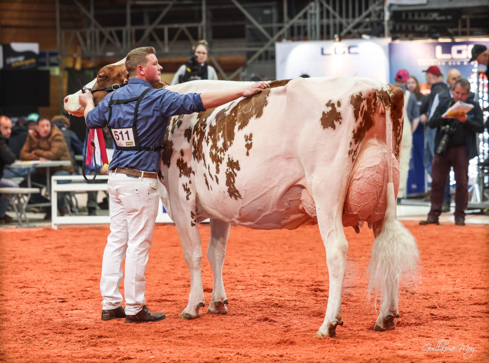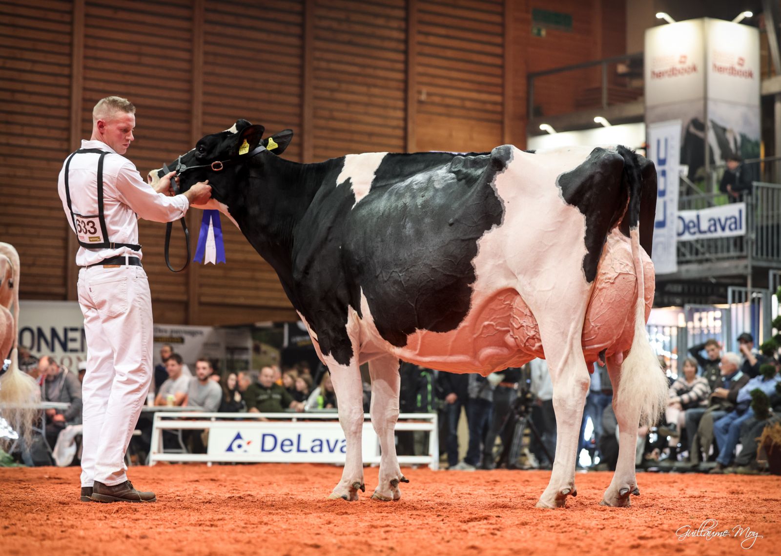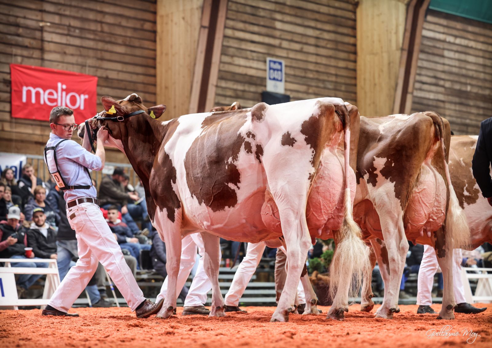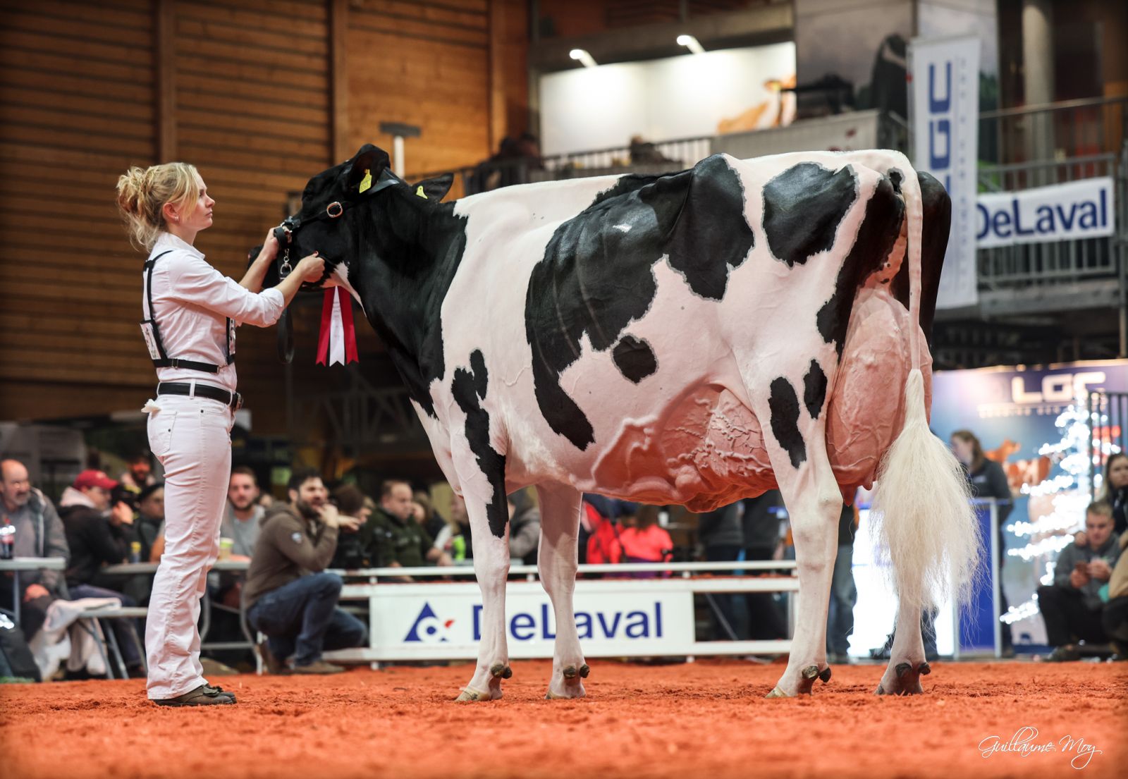 She is in topshape in her fourth lactation and added a new title on her victorylist last weekend at the Jr. Expo Bulle in Switzerland with winning the Senior Champion title and Grand Champion title B&W: Comestar Doorman O'Katrysha EX-93-CH EX-96-MS! The 6 yr. old Doorman granddaughter from Lovhill Goldwyn Katrysha EX-96-USA was followed by the Reserve Grand Champion Mollanges Gold Chip Fidela (s. Gold Chip). O'Kaliber daughter Goya became Honorable Mention Grand Champion B&W at the show. Supreme Champion of the show became Ptit Coeur Royalcrush Mauricette! All-Star Agent Elegance was classwinner and became later Senior Champion and Grand Champion R&W at the show. She was also in 2021 the R&W Grand Champion! She is followed by Mattenhof Armani Sayuri, she became Reserve Grand Champion. The Honorable Mention Grand Champion title was for Thomi's Power Flo-Red. Plattery Bad Ilona was named as Champion Heifers red&white, she is followed by the Altitude-red daughter from Strans-Jen-D Tequila-Red EX-96-USA: Milksource Altitude Tokyo.