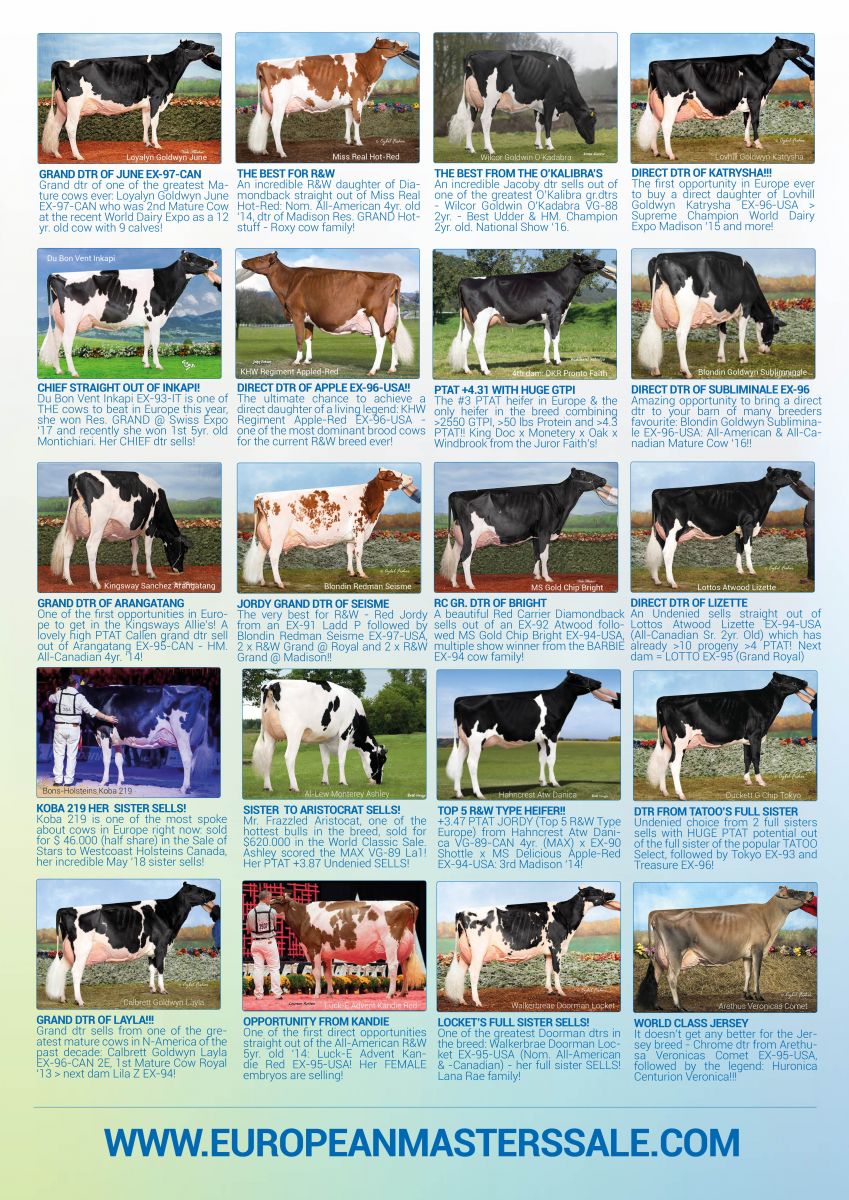 Only 1 month until one of THE evens in the international Dairy agenda: The European Show in Libramont. The best cows of the country teams have been selected and all of the greatest show cows from Europe will be present to compete with each other on the highest level in the European Showring, known for the undefeated atmosphere. The European Masters Sale will take place on the Friday-night (12. April) after the R&W show in the show ring, check out our flyer for a few examples of lots selling and keep an eye on our website and social media for our upcoming index consignments to be announced in the next days, which includes some spectacular lots, like: