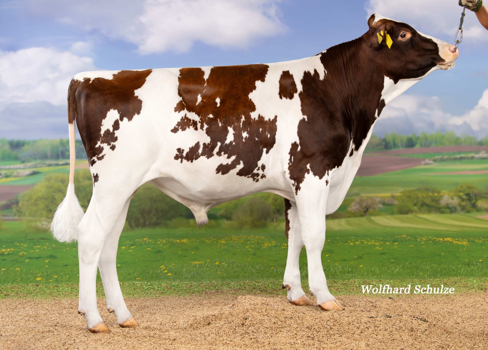 He had already stood out for his sky-high indexes in countries such as Germany (+160 RZG and +126 RZE), Italy (+5058 PFT and +2.52 Type), Canada (+4101 GLPI and +8 Conformation) and the United States (+3229 GTPI and +1.11 Type) but, recently his French figures were added, bringing him to the number one position among all bulls. With a flawless and a sky-high index of +226 ISU with a nicely balanced production and super linear profile! He also scores +2.8 for Type. DG Rico comes from the famous DG OH Rose VG-89-NL cow family, which of course already achieved worldwide fame with bulls such as DG DV Rammstein and Koepon Ranger Red. DG Rico is a Real Syn son out of DG Rifka *RC (s. Alanzoo) from DG DV Robinson GP-NL 2yr., who is also the granddam of the new German sensation DG Sonni Red (+159 RZG and +139 RZE).
