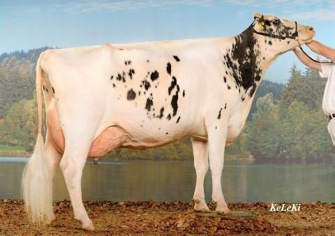 Moo Goldwyn Diamond EX-92-CH is one of the successful show cows form the Giessen Cinderella branch out of the Roxy-family. Multiple sons of Diamond already left to AI like Hokovit Best @ World Wide Sires Germany who recently has become a daughter proven sire and Hokovit Win, the #2 Windbrook son in Switzerland. Diamond her first daughter by Bolton is fresh and has been pictured. Hokovit Bolton Sharon, bred by Hokovit Genetics already delivered high sons like Frauchwil Smarakt (s. Supersire) who is the #7 ISEL Genomic bull in Switzerland and is also dam to the #3 ISEL Heifer in Switzerland, Frauchwil Supersire Shakira.