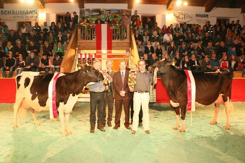 Great day for Schönhof Holsteins last weekend at the Salzburger State Show in Maishofen, Austria. The German judge Cord Hormann named the Outside dtr SCH Roxett from Schönhof Holsteins as his Grand Champion. The Reserve Grand came out of the same barn and is the Damion daughter Fury! Click further for pictures and more info!