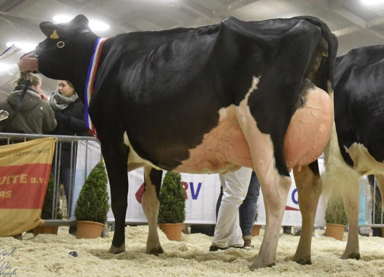 The wintershow Pesse held last Friday was a great great succes for Eurogenes-members! Drakkar Bulona EX-91-NL, the long, wide and great uddered Lotta Hill Shottle daughter won the tough senior class, just ahead of Marie 356, the EX-92-NL Goldwyn daughter who won the HHH-Show in the past. Later that evening Bulona was crowned Udder Champion and Grand Champion of the show
