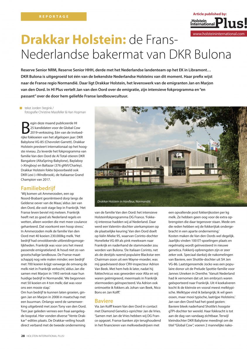 An interesting article is written about the great breeding program of Drakkar Holsteins / DG France. Drakkar Holsteins is for example the home of the huge transmitter DKR Babylone VG-85-FR, an famous bull dam who is the foundation behind the popular bulls: DKR Bangalore, DKR Baylaboy and DKR Baltazar. Drakkar Holsteins isn't only recognized for breeding in the GTPI market, the recently classwinner at the Italian National Show DKR Lexi EX-95-IT (s. Windbrook) and European Show cow Drakkar Bulona EX-92-NL are also bred in France by Drakkar Holsteins / DG France.