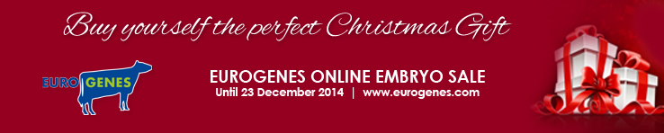 Buy yourself the perfect Christmas Gift through the Eurogenes Online Embryo Sale. Almost 30 great packages with something for everybody! Several combinations with >2500 GTPI PA, embryos by the exclusive #1 sire RUBICON (SEXED FEMALE EMBRYOS), embryos from one of the highest Homozygous Polled heifers, Brown Swiss and more! http://auction.eurogenes.com