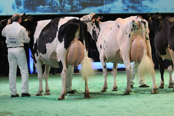 2013 seems to be the year for the fantastic Baxter-daughter Delicia VG-89-FR (MAX)! She was already a Best Udder finalist as 2-Yr. Old at the National Show 2011 after which she came back in 2013 taking a 2nd place at Swiss Expo, Grand Champion Europgenetique and 3rd at the European Championships in Fribourg! Delicia carries a different pedigree from the Comestar Laura Sheik family who produced top bulls like Lauthority, Starleader, Outside, Lheros, Stormatic and many more. This is your change to bring the very best of the Comestar Laurie Sheik family to your herd with Goldsun embryos (Goldwyn x Allen Amyly EX-95-IT) x Baxter Delicia VG-89-FR (MAX).