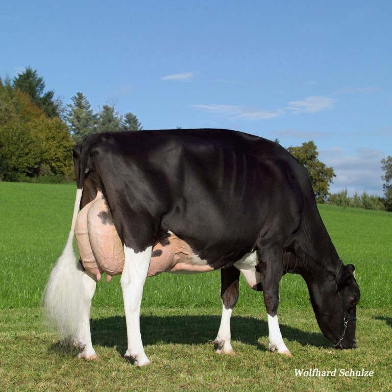 Hellender Juror Jurgolin EX-92-CH belongs to the greatest brood cows in the breed with no doubt! Jurgolin was a successful show cow herself and won Grand Champion at the Eliteschau Brunegg as an 11 year old cow. Now she is 13 years old, still alive and has her current lifetime production set at far over 100.000 kg milk! Even more impressive is her performance as a brood cow. Her son COLIN @ Swiss Genetics is still the #4 Swiss ISEL bull from this moment and her dtrs had huge performances at the big shows like the Swiss Expo for example. Name of her dtrs which everybody know are Hellender Champion Calanda EX-95-CH 3E, Hellender Champion Corina EX-94-CH 3E and Hellender Champion Cortina EX-94-CH 2E! Both, out of Jurgolin herself and her dtr Cortina are embryos selling in the Eurogenes Online Embryo Sale.