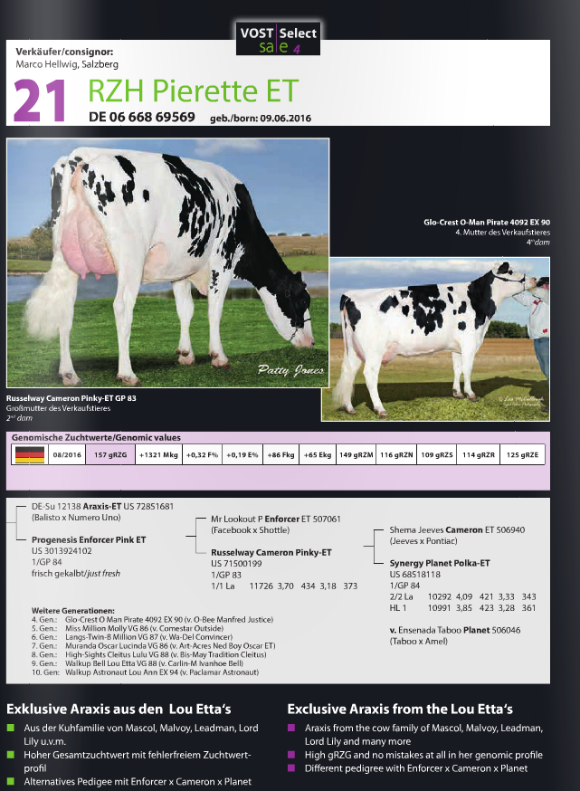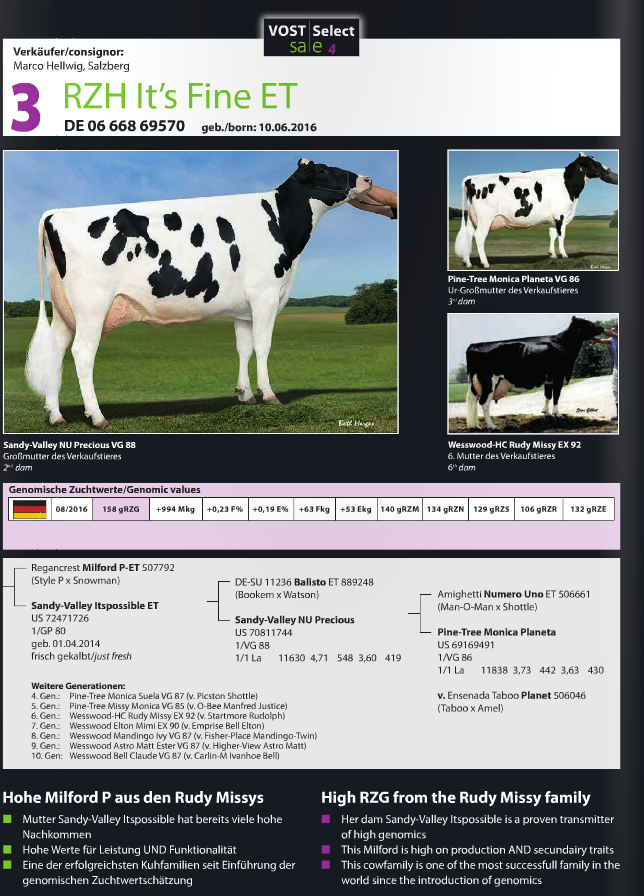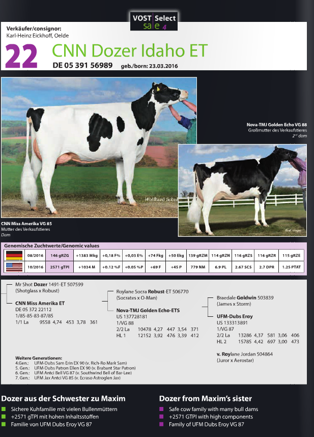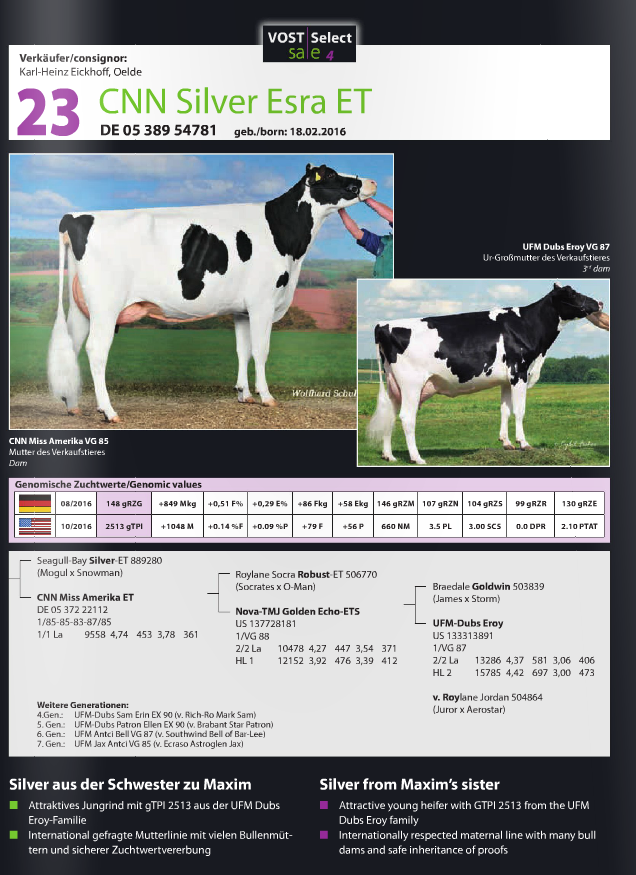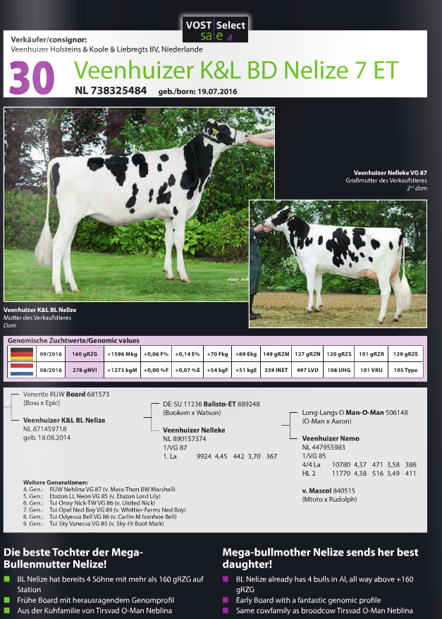 Friday the 25th of November, the 4th edition of the Vost Select Sale will take place in Leer, Germany. The Eurogenes members Rinderzucht Hellwig, Zuchtbetrieb Reinermann, CNN Holsteins, Beechrow Holsteins & Veenhuizer Holsteins are selling lots. Click further for more info.