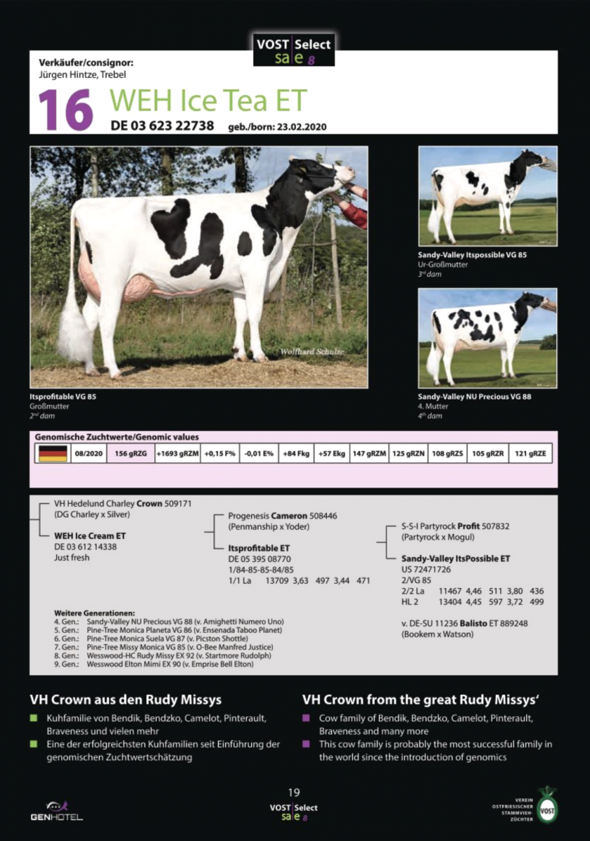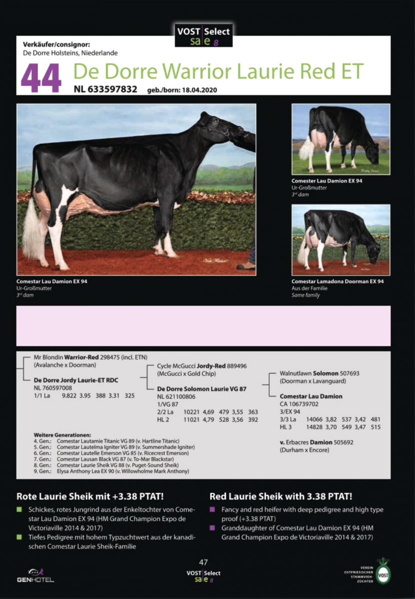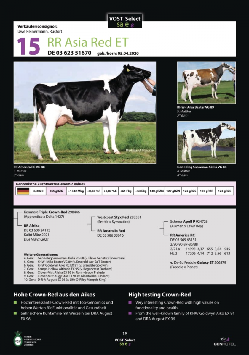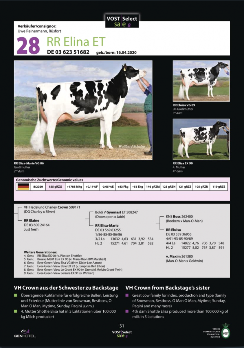 Only a few days until the online edition of the VOST Select Sale starts!! Eurogenes members have offer their very best which will open doors for you Friday the 27th of November. Take adventage and bid last on these great lots such as: an Unix from Bons-Holsteins Koba 219 her maternal sister, lovely R&W Warrior-Red from the Meggilee's, +157 RZG Freemax from the Future-Jolane Uno Hay family, +155 RZG Crown-Red backed by the KHW-I Aika Baxter family, Charley Crown at +156 RZG from the Rudy Missy's, Crushtime grand dtr of WI Beemer Felli VG-87-NL 2yr. and much more!