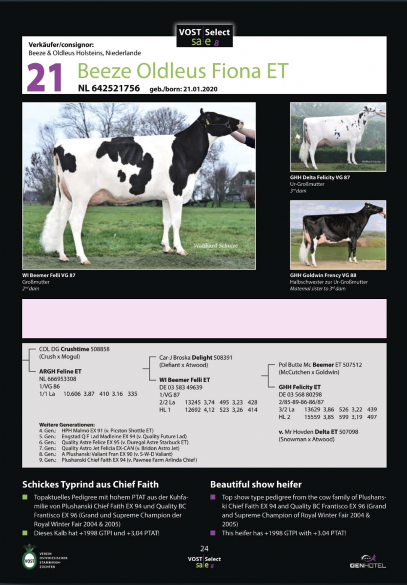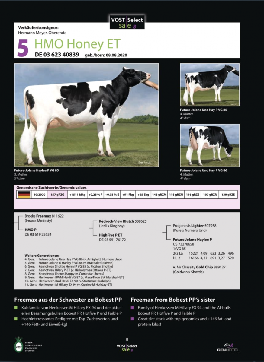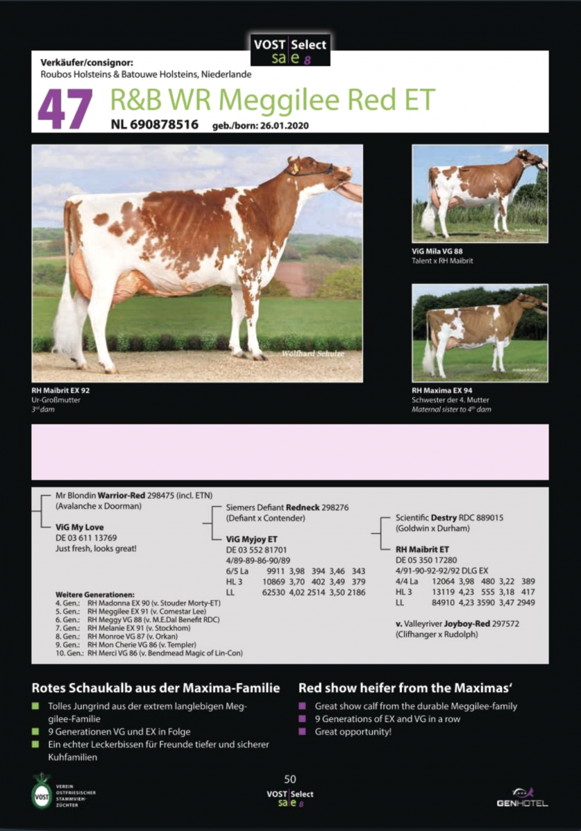 Only a few days until the online edition of the VOST Select Sale starts!! Eurogenes members have offer their very best which will open doors for you Friday the 27th of November. Take adventage and bid last on these great lots such as: an Unix from Bons-Holsteins Koba 219 her maternal sister, lovely R&W Warrior-Red from the Meggilee's, +157 RZG Freemax from the Future-Jolane Uno Hay family, +155 RZG Crown-Red backed by the KHW-I Aika Baxter family, Charley Crown at +156 RZG from the Rudy Missy's, Crushtime grand dtr of WI Beemer Felli VG-87-NL 2yr. and much more!