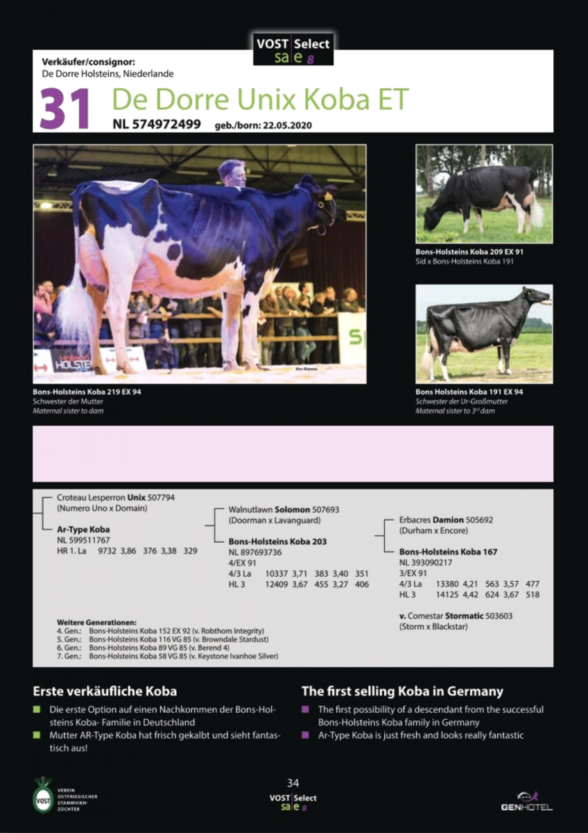 - Same family as the well known Bons-Holsteins Koba 191 EX-94-NL - Grand Champion NRM Show '14