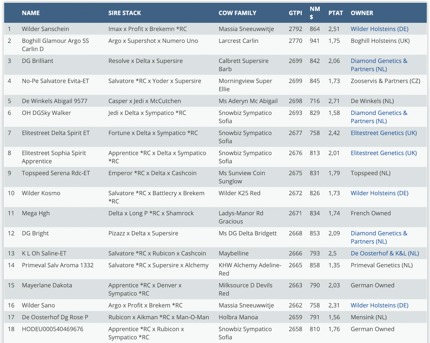 * 4 daughters in the European Red Carrier Top 25 for GTPI!
