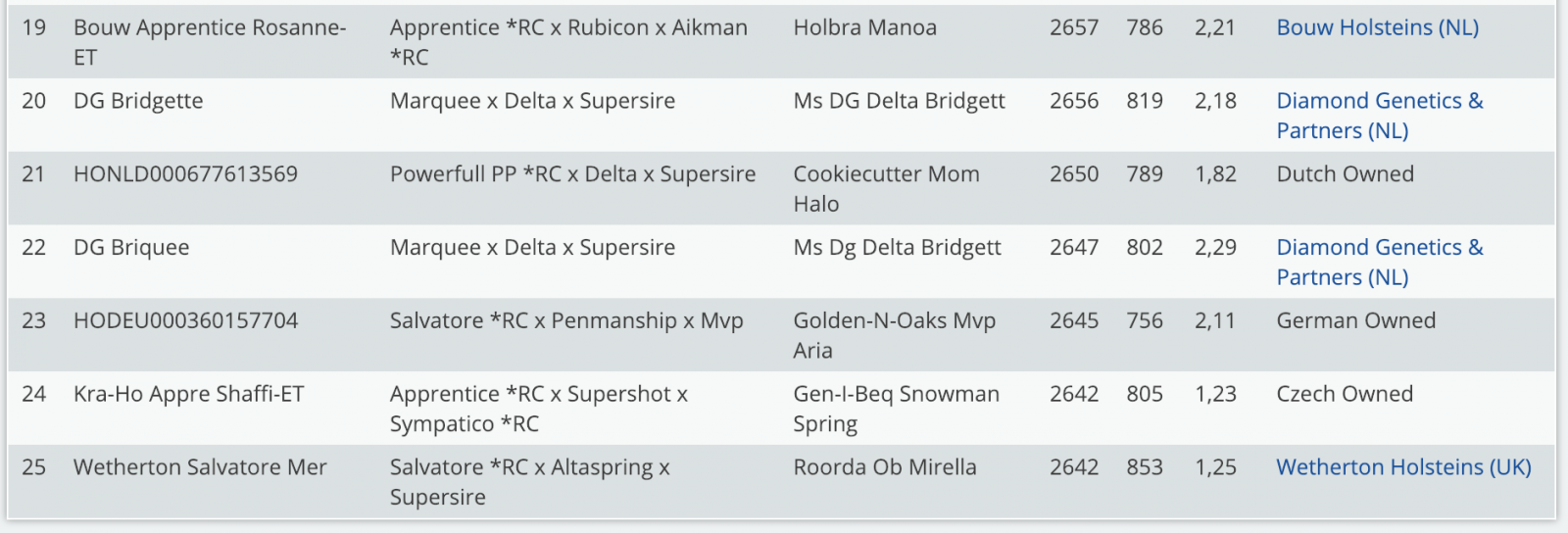 Here is the one & only European RED CARRIER ranking for females based on GTPI - NOTE: this is an un-official list, we have tried to include all European Red Carrier females which should be on this list, however heifers could be missed. If your heifer is missing, or you know missing heifers, let us know through info@eurogenes.nl, so we can add them to the list to get this ranking as complete as possible. Click further for the ranking!
