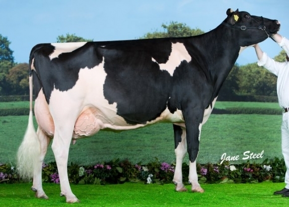 Sterndale Gold Ashlyn, a beautiful Goldwyn grand daughter of Tir-Day Ashlyn EX-96 at Peak & Sterndale Holsteins has a new picture and has been classified EX-91-UK! She is amongst the greatest show cows in the Sterndale herd together with her maternal sisters. 2010 was a fantastic year for Ashlyn when she won All-Britain Jr. Heifer in Milk, Res. Champion Heifer Dairy Event and Res. Champion Heifer Agriscot. Ashlyn is the 4th generations of Excellent in a row and is currently in flush program.