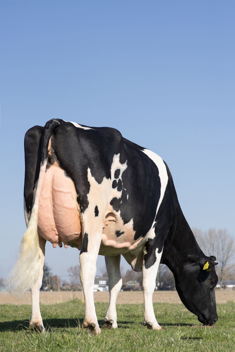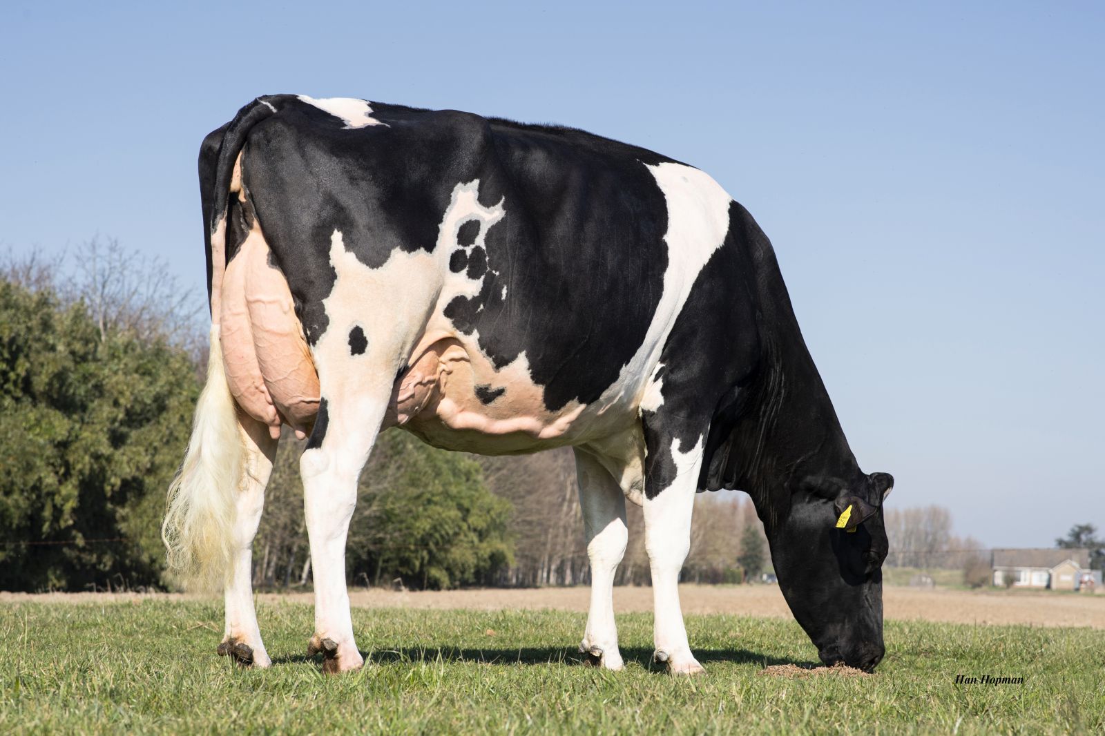 Keep an eye on her! Recently JK Eder DG Silvester classified with the predicate EXCELLENT with 91 frame, 90 dairy strength, 89 udder and 90 for her feed & legs! This amazing Silver daughter is projected with >10.300kgM and 4.11% PROTEIN! She traces back on a VG-85 Tango x VG-85 Bookem to the former #1 GTPI cow in Europe: All.Nure Baxter Silvy EX-90-NL 5yr. This ultra-succesful family has delivered several bulls for A.I. like Seducer, Season, Sullivan & much more. Silvester her VG-87-NL 2yr. Bourbon sister is the #1 yielding cow in the herd of JK Eder Holsteins and is projected with: 305d 11.438kgM 3.67%F 3.59%P (LW 137). As foundation cow of this deep cow family we find the Gold Medal Dam & Dam of Merit: Morningview Converse Judy EX-93-USA. Han Hopman has captured Silvester on camera.