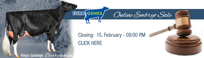 Hard to find GOLDWYN embryos are offered in the Eurogenes Online Embryo Sale from one of the best families around the globe the Brookview Tony Charity EX-97-USA DOM 13* family! These GOLDWYN embryos are from branch that brings us to Charity 504 EX-94-NL - the Grand Champion National NRM Show 2004. She deliverd many sons in A.I. and is a Comestar Leaer dtr straight out Hanover-Hill Raider Char EX-CAN 4E. Her EX-91-NL Duplex daughter: Giessen Charity 14 has produced some exclusive GOLDWYN embryos which are for sale in the Online Embryo Sale! Charity 14 was 2nd in her section at the National HHH-Show 2008 and is the dam to Giessen Charity 44 EX-91-NL (s. Million) who won the Grand Champion at the Wintershow Pesse '15. Charity 504 is also the 4th dam to the reigning 2-Yr Old Champion HHH-Show 2018: Giessen Charity 138. She is scored with the maximum score of VG-89-NL VG-89-MS as a 2yr. Old and will be presented at the European Show in Libramont April '19.