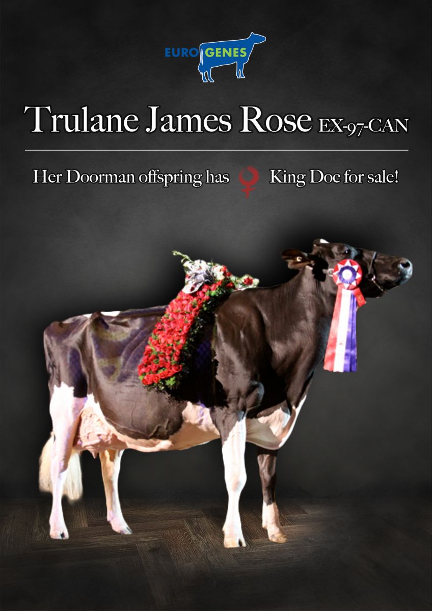 A very exciting offer in the Eurogenes Online Embryo Sale two packages that offers the best from the cow that won 3x the Royal Winter Fari: Thurlane James Rose EX-97-CAN 2E 5* family! She was also All-Canadian & All-American '08, '09 and Grand Champion Quebec International 2008. Her Doorman offspring Croquelois Maya-Rose VG-86-FR VG-87-MS 2yr. has FEM. King Doc and Impression embryos available and continues the legacy of James Rose. Maya-Rose was Junior Champion Arras Terre en Fête Show '18, 4th in her section at Space '18, classwinner Radinghen '17 and more! Her Unix daughter had already success with winning Res. Junior Champion Départemental Show '19!!
